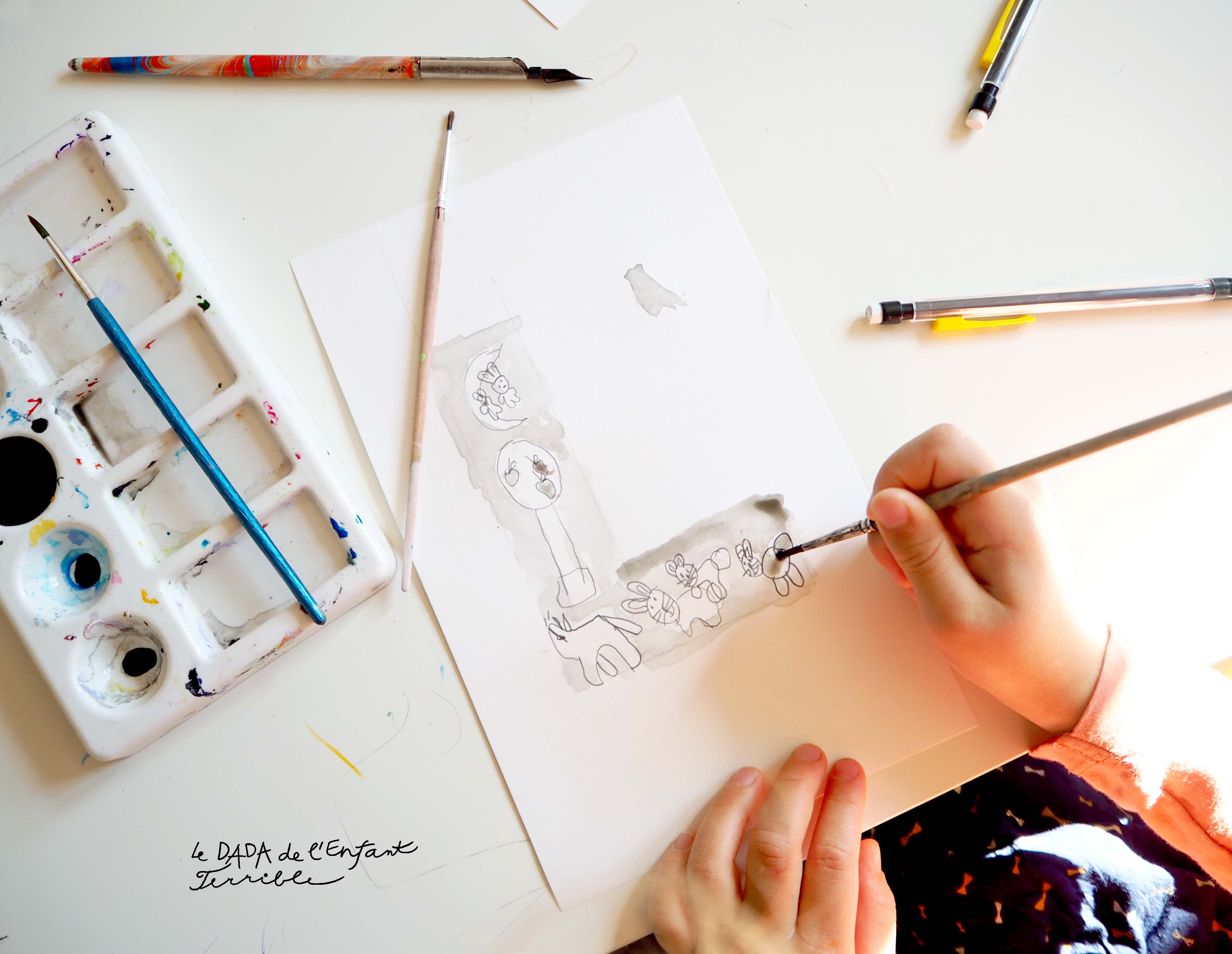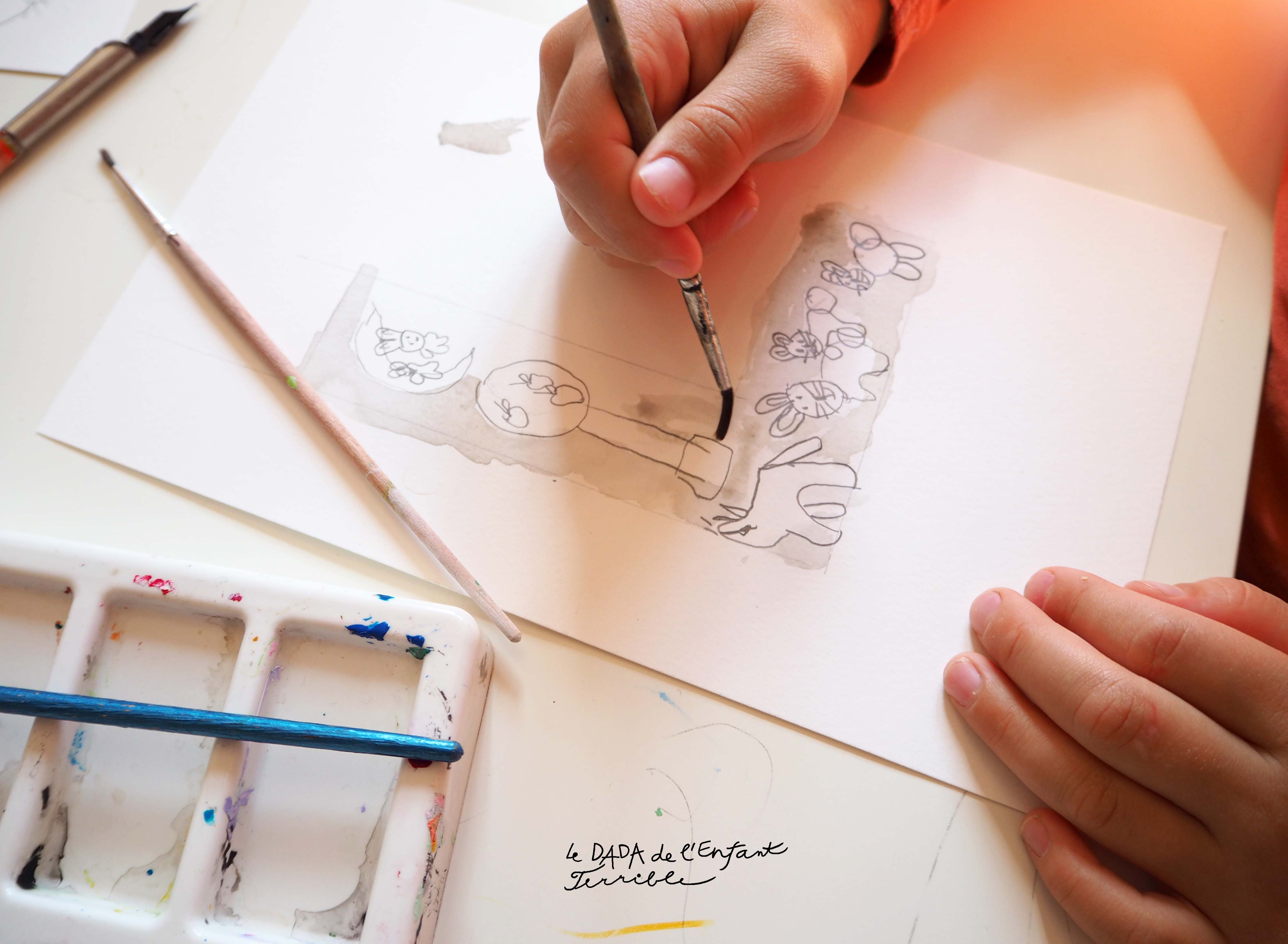 *Nous n’avons pas forcément respecté la vraie technique du lavis comme décrite dans les manuels mais l’idée et le cœur y sont 😉