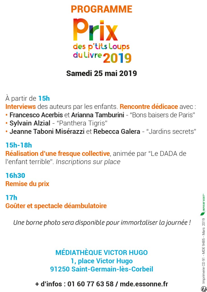 Samedi 25 mai 2019 à la Médiathèque Victor Hugo à Saint-Germain-lès-Corbeil (91)