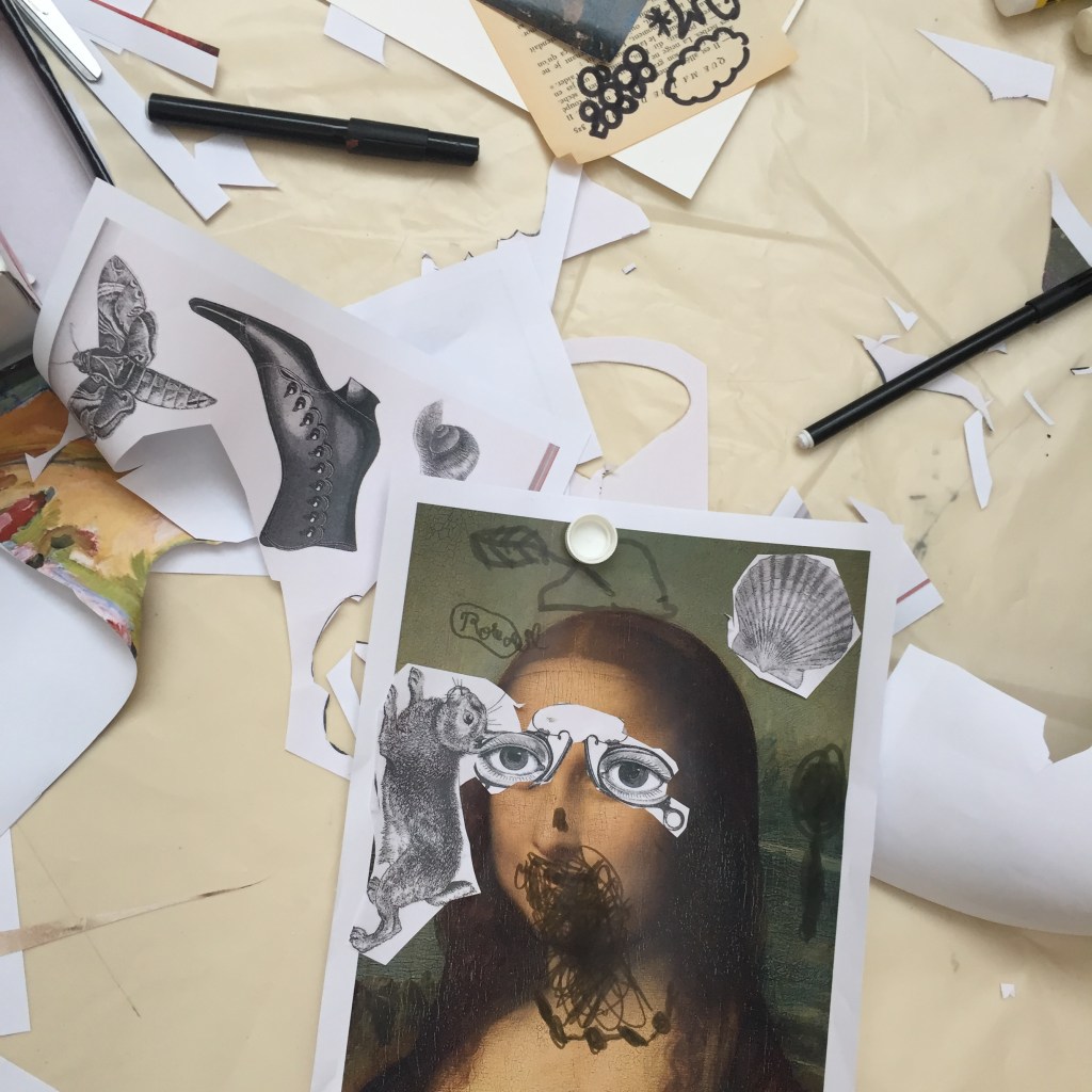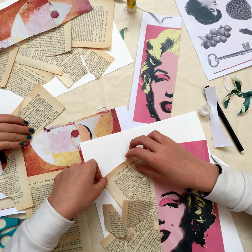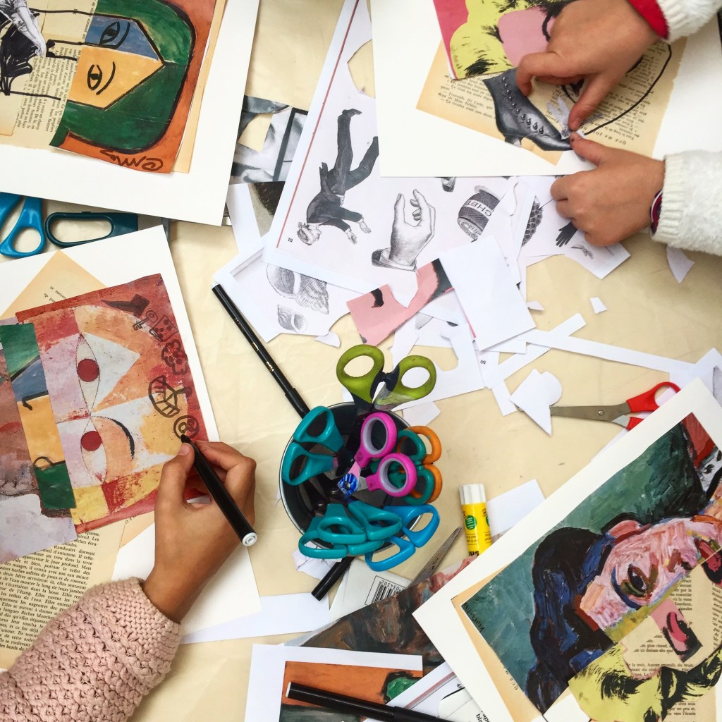 « Le jeu du collage dadaïste » pour les enfants à partir de 6 ans (photos ci-dessous)