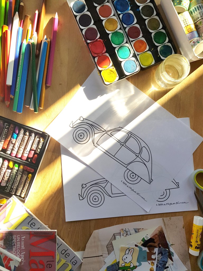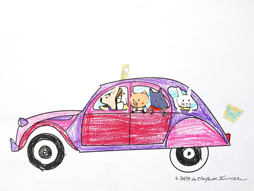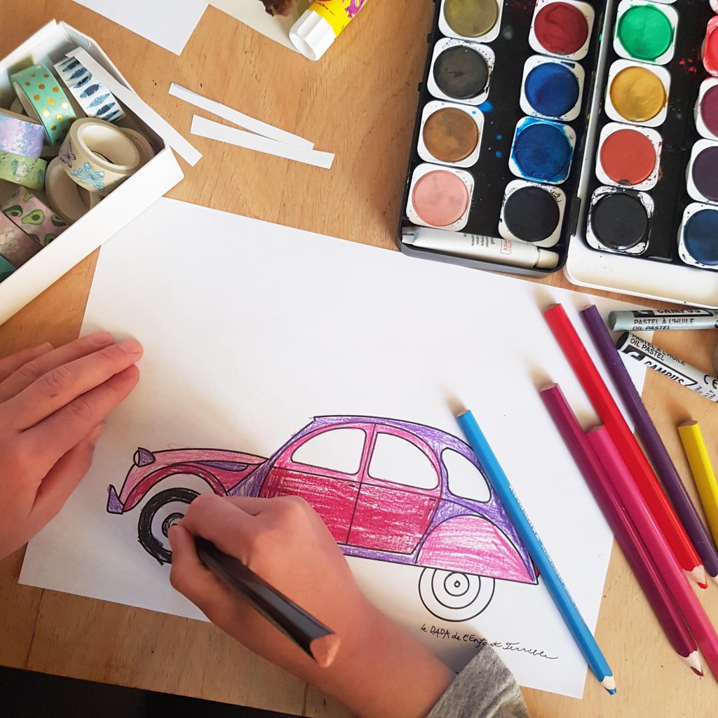 Et puis si vous avez juste envie de colorier la voiture et de dessiner des têtes dedans, c’est, bien sûr, possible aussi!