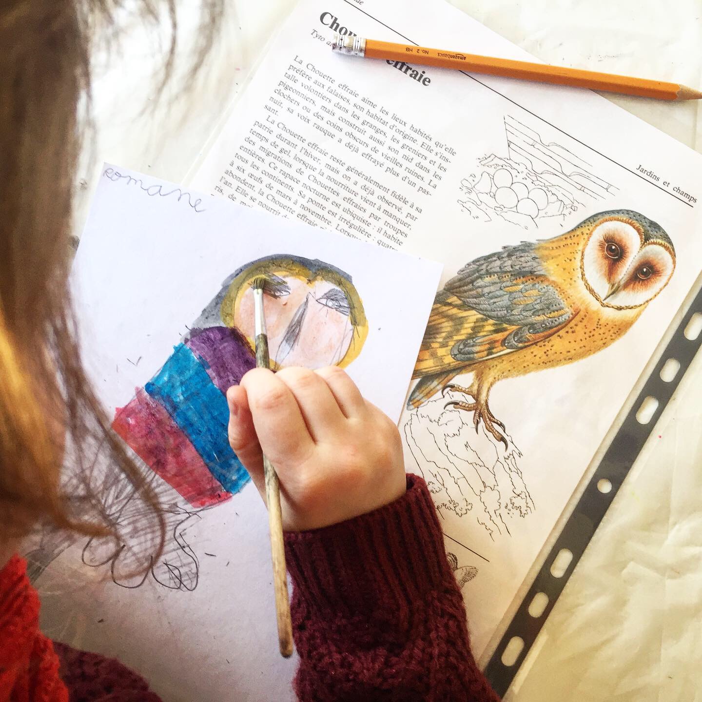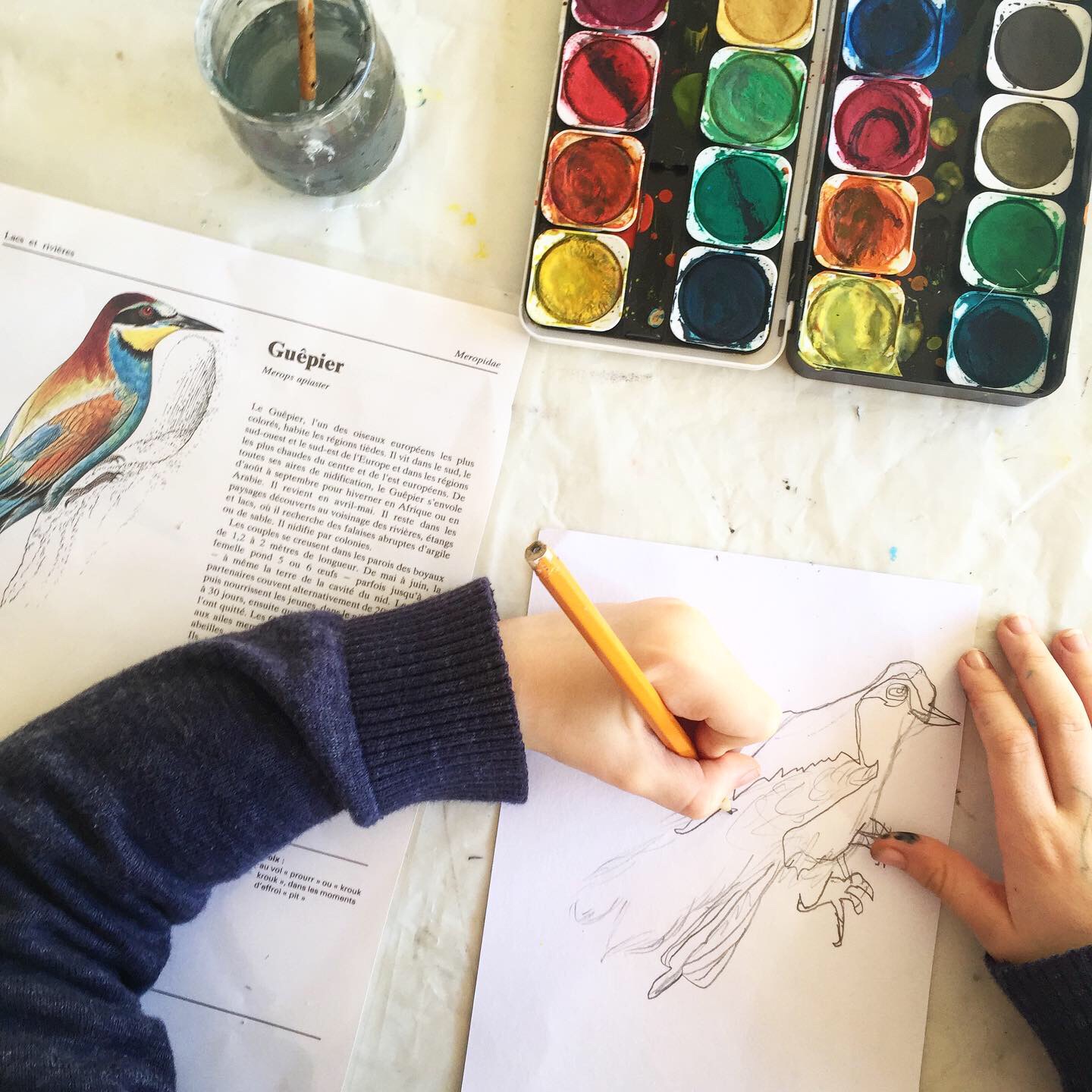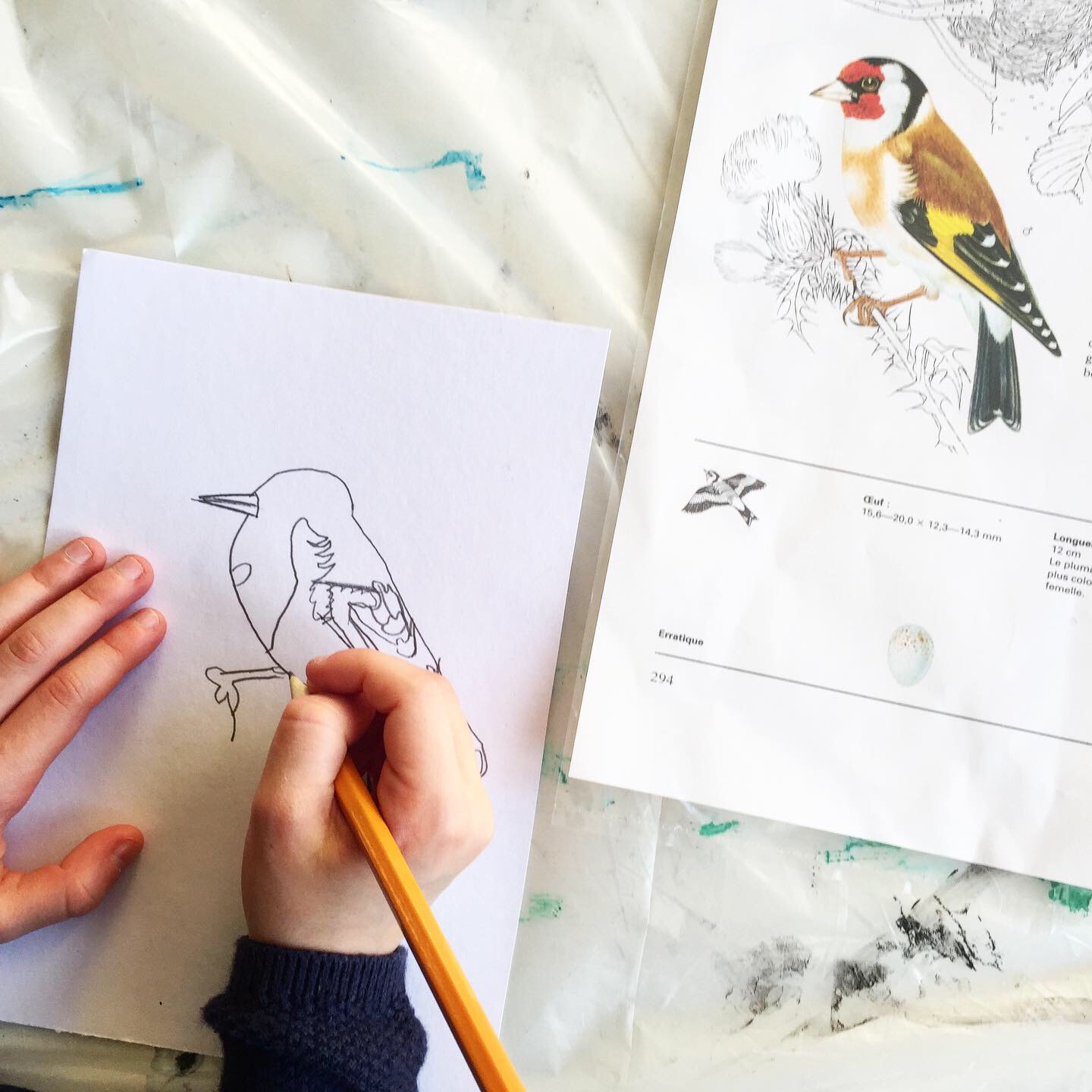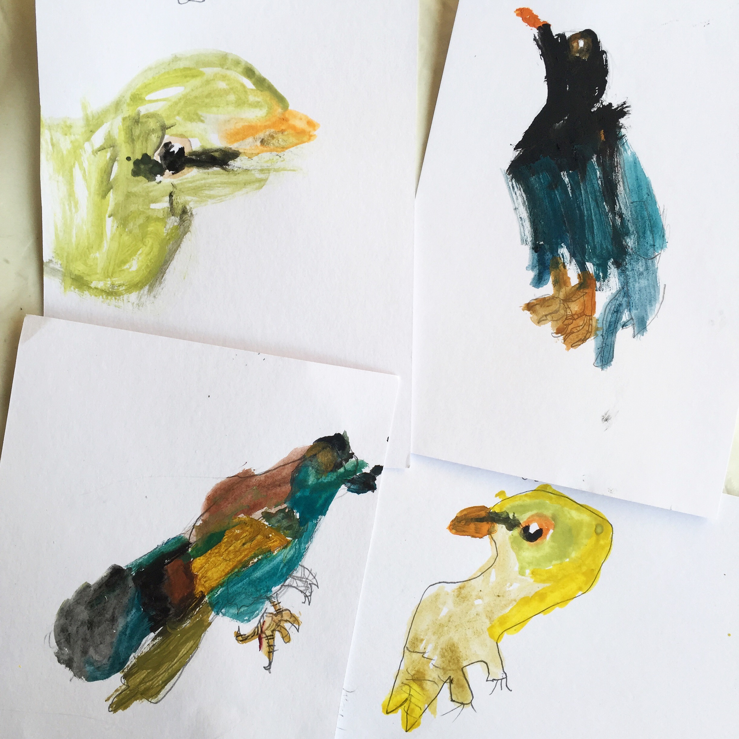 Dessine-moi un oiseau Atelier, école, Galerie Atelier avec les enfants de l’Ecole Élémentaire de Grand Bourgtheroulde (27). Crayon à papier, gouache. Similaire