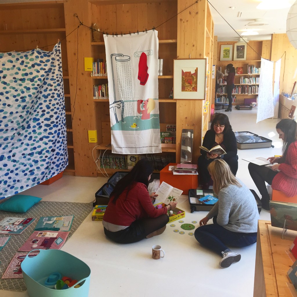 La création des modules d’animation pour la Bibliothèque départementale du Lot (voir le projet ici) a été accompagnée par quatre journées de formation. Celle-ci permet aux bibliothécaires et aux professionnels de la petite enfance de découvrir en détail et s’approprier les quatre différents modules d’animation. A travers de plusieurs ateliers pratiques, elle vise également à développer l’esprit créatif des équipes afin de pouvoir imaginer d’autres activités au sein de leur structure et enrichir ainsi les animations proposées par les modules.
