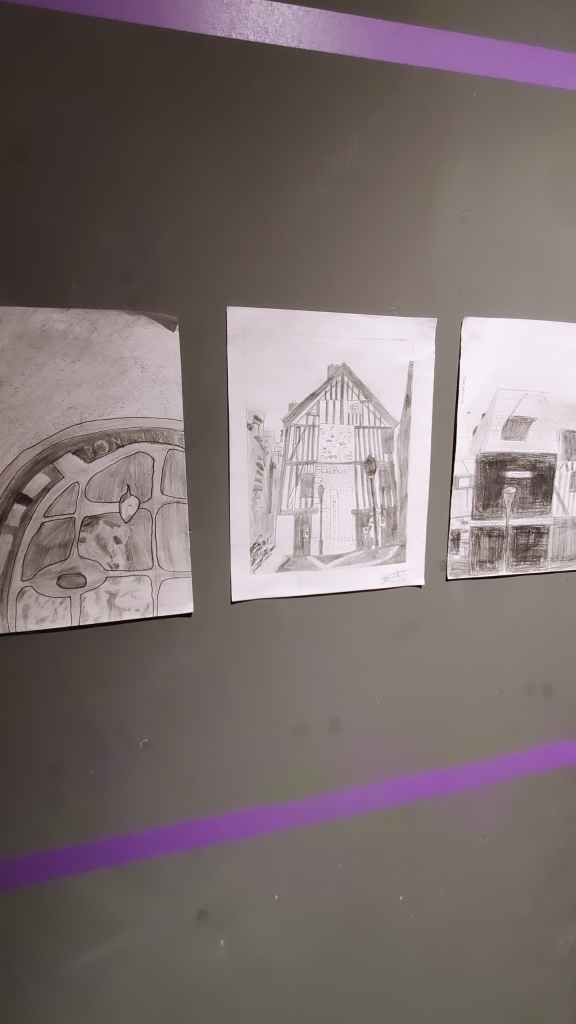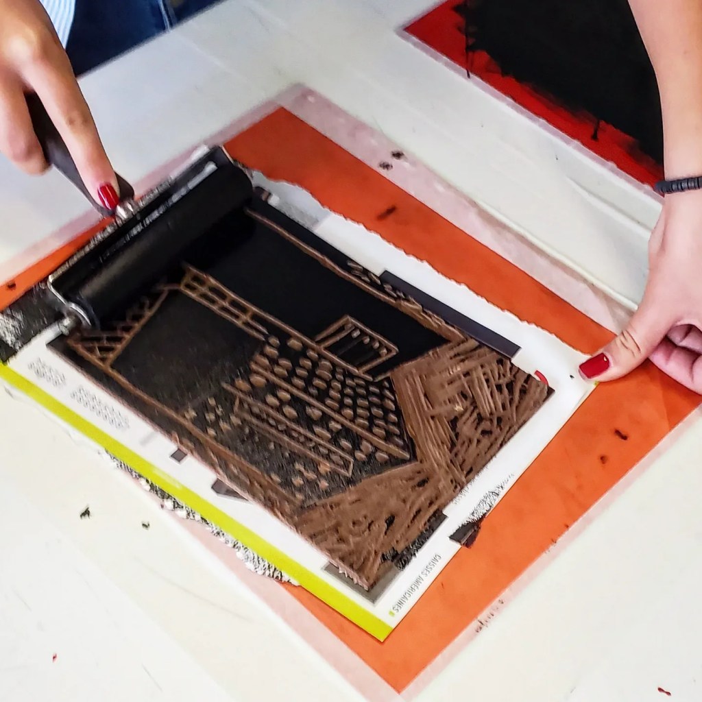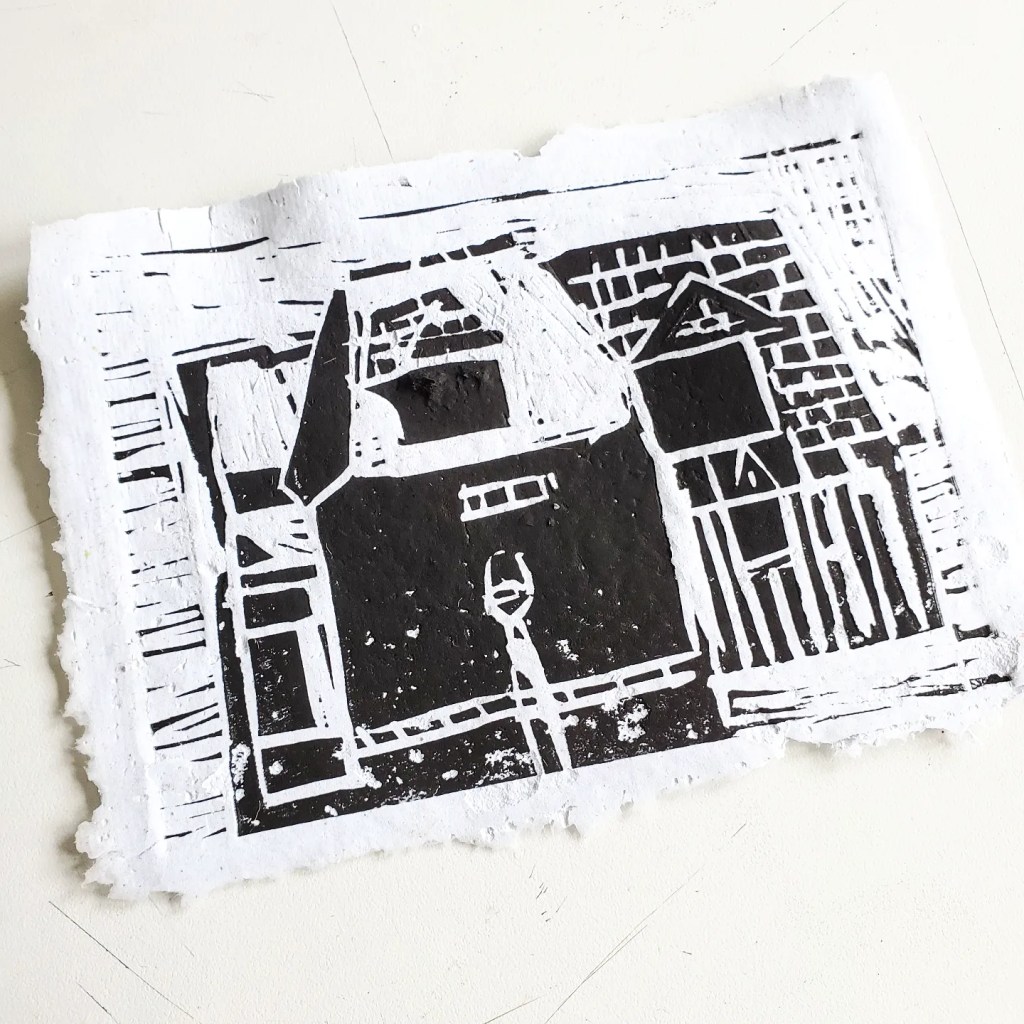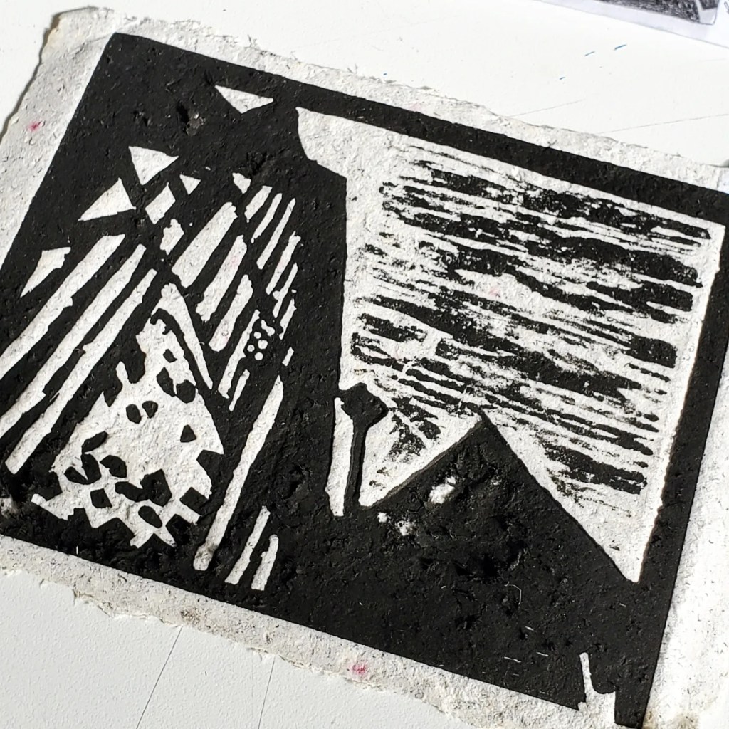 Ensemble, nous avons fabriqué du papier recyclé à partir de vieux manuels scolaires. Ensuite, les élèves ont travaillé sur des dessins de la ville pour créer leur linogravure et l’imprimer sur les feuilles qu’ils avaient fabriquées. Une exposition a ensuite été organisée à la Galerie Théroulde pour partager le travail des élèves avec un large public.
