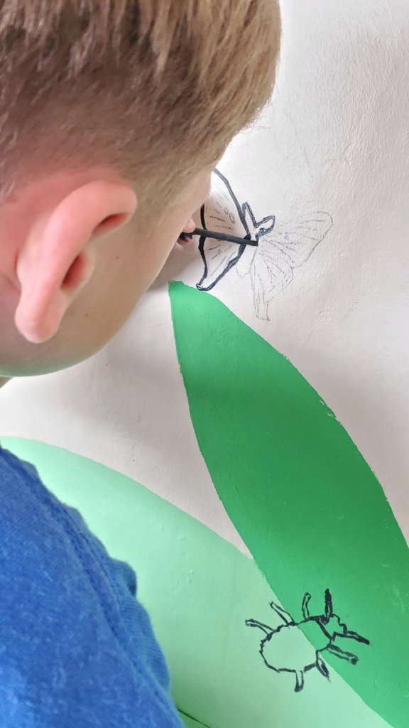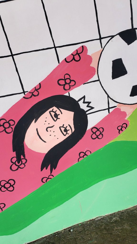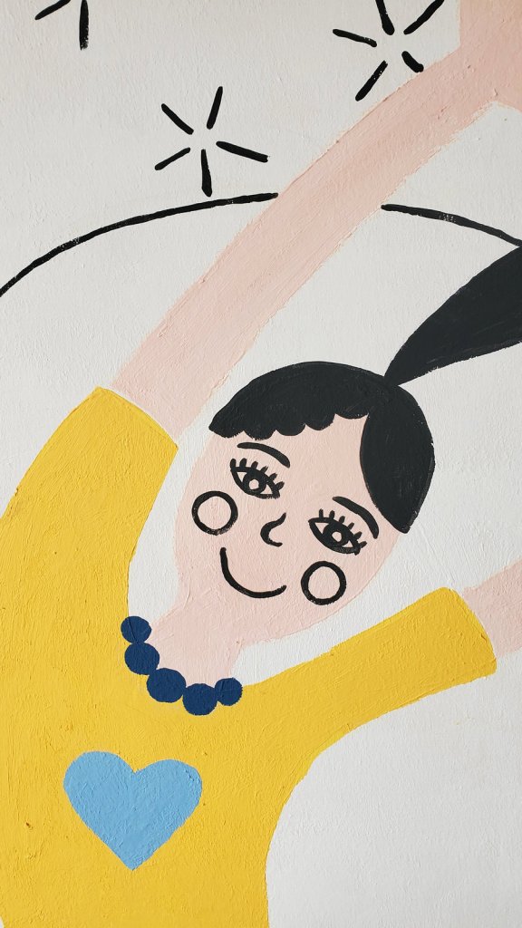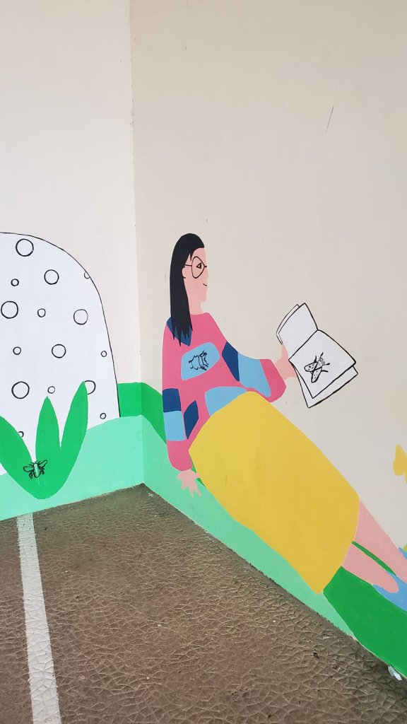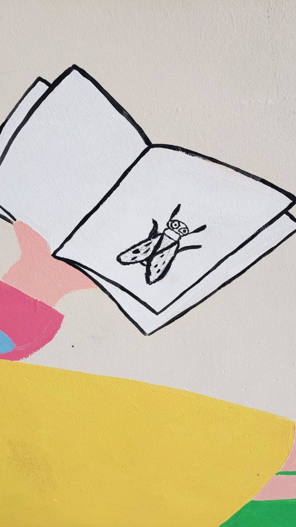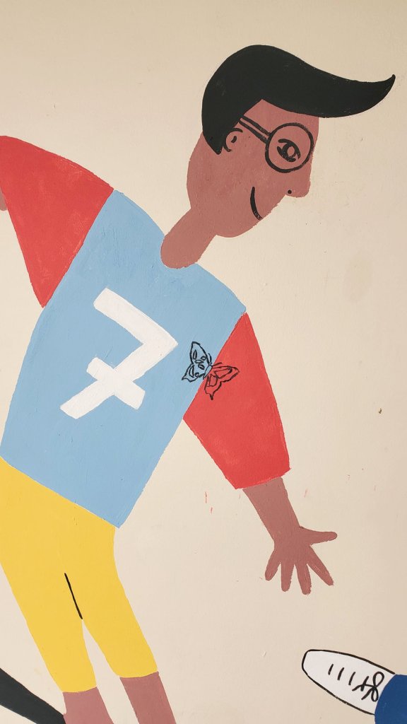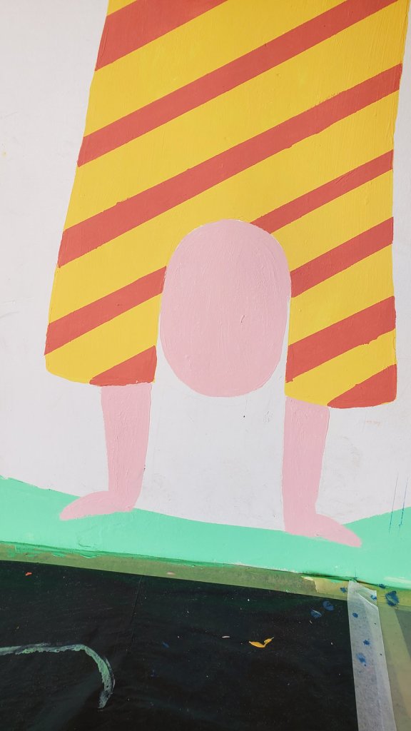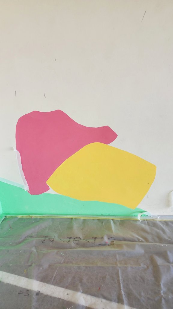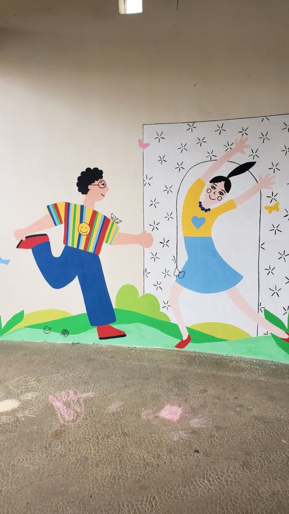 Fresque murale sur le thème du sport et du jeu, créée et réalisée avec les élèves des 7 classes de l’école élémentaire de Cagny (14).