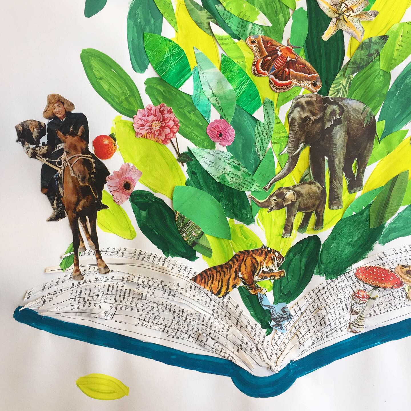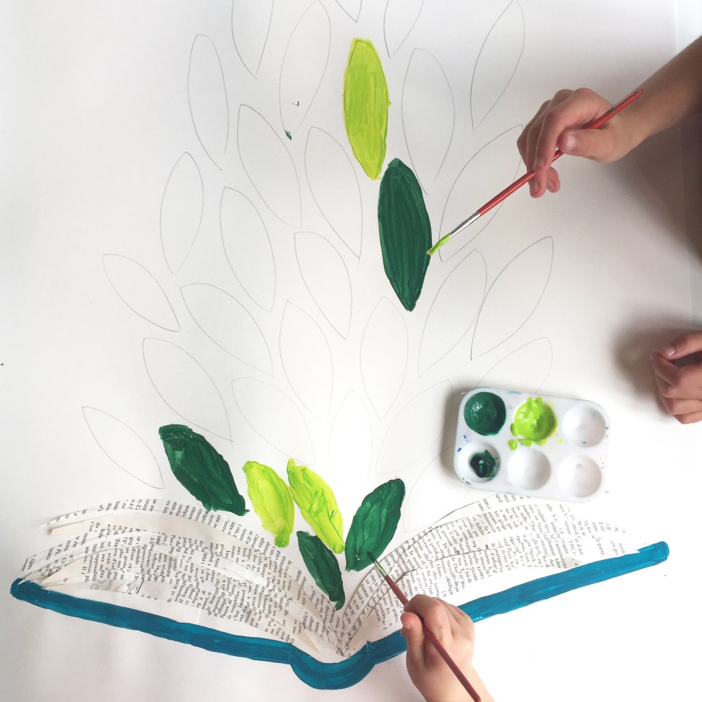 Ensemble avec les élèves de l’école élémentaire Hector Malot, nous avons créé de grandes affiches pour décorer le coin jeunesse de la bibliothèque municipale de Grand Bourgtheroulde (27).