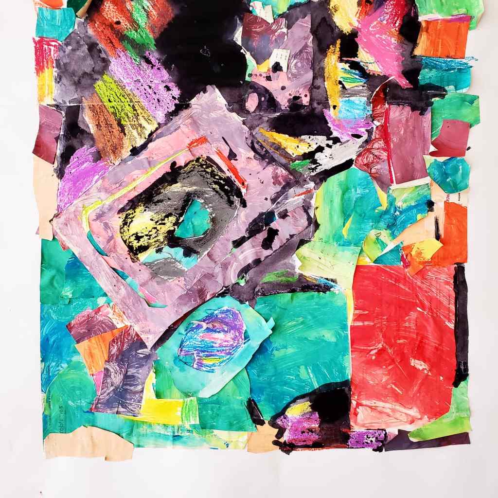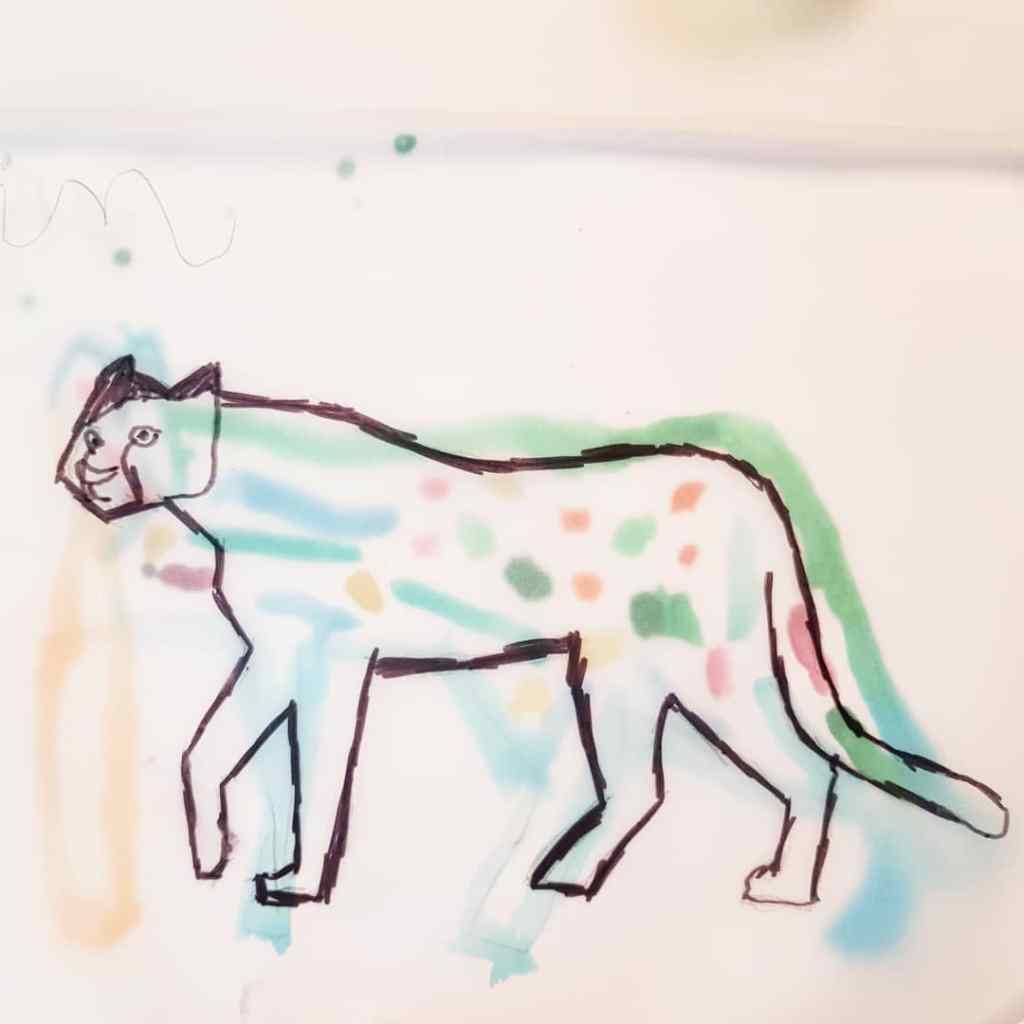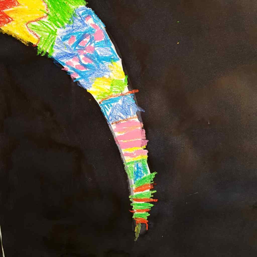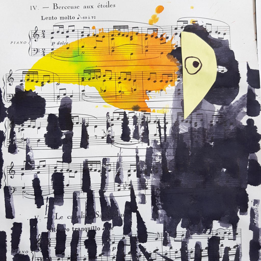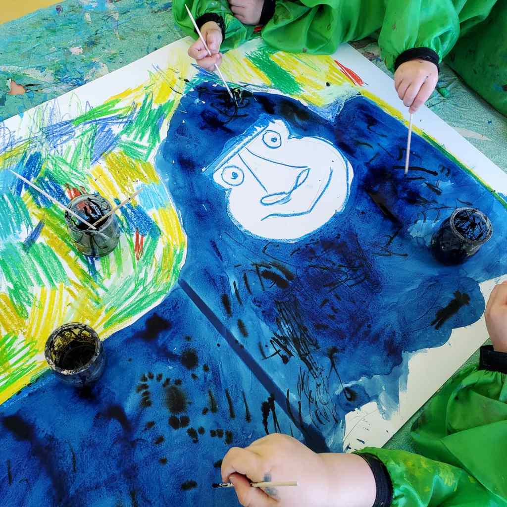 Ateliers sur le thème de la jungle proposés à l’École Élémentaire Dian Fossey à Douvres-la-Délivrandes (14). Pour une partie, les réalisations des 5 classes (TPS-CP) ont servi à imaginer la fresque sous le préau de l’école que nous avons peinte ensemble avec les enfants.