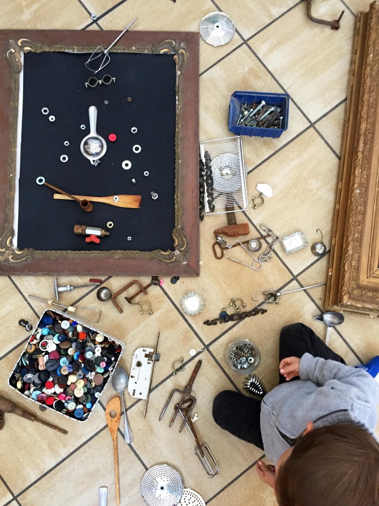 « Construction des machines bizarres », un atelier pour les tout petits inspiré par le « Ready-made » de Marcel Duchamp (photos ci-dessous)