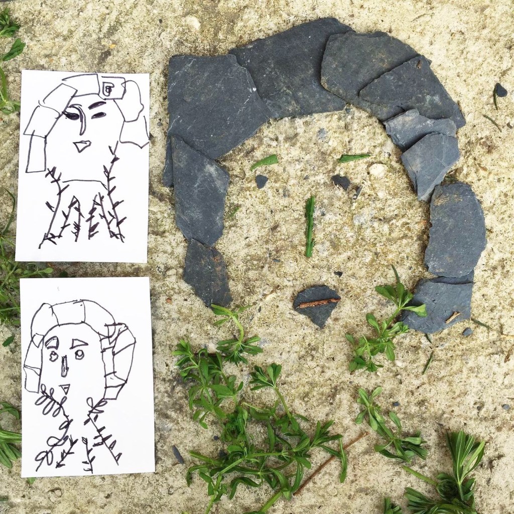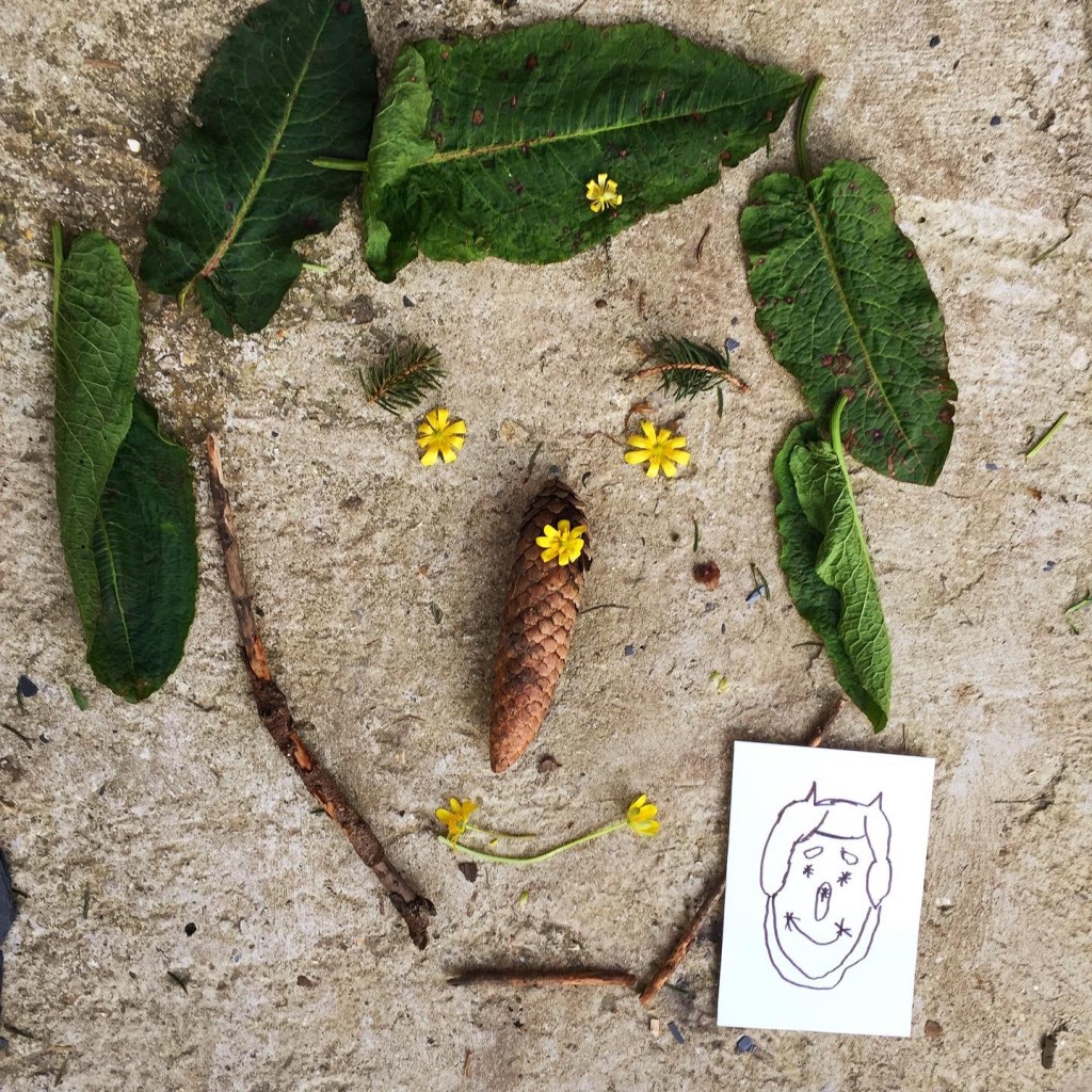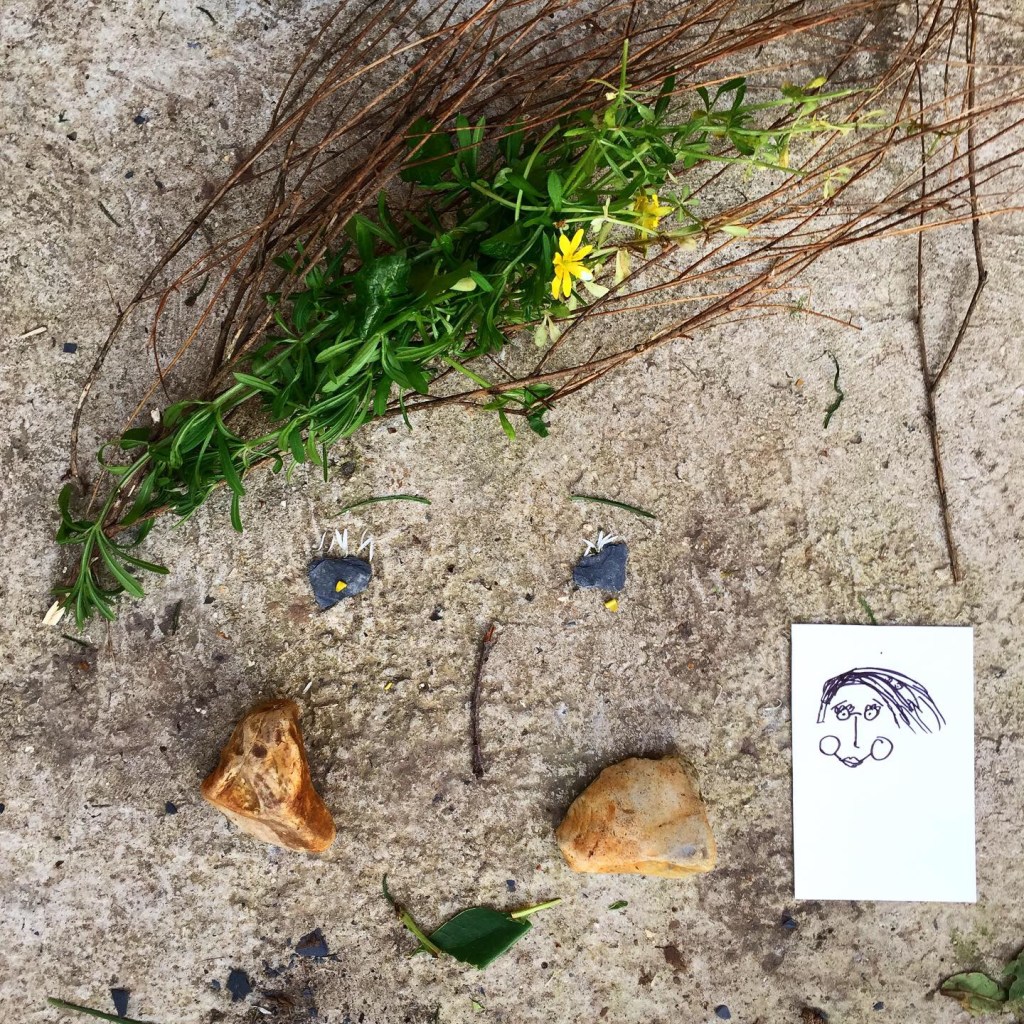 Pour le premier télé-atelier de mercredi le soleil est au rendez-vous, sortons donc dans le jardin! Prenez tout ce que vous trouvez (feuilles, fleurs, branches, cailloux…) et imaginez des visages. Pas de jardin, pas de balcon? Faites du Maison Art avec tout ce qui vous viendra sous la main: crayons, gomme, boutons, trombones, pâtes, perles, laine, Lego, clous ou chaussettes!