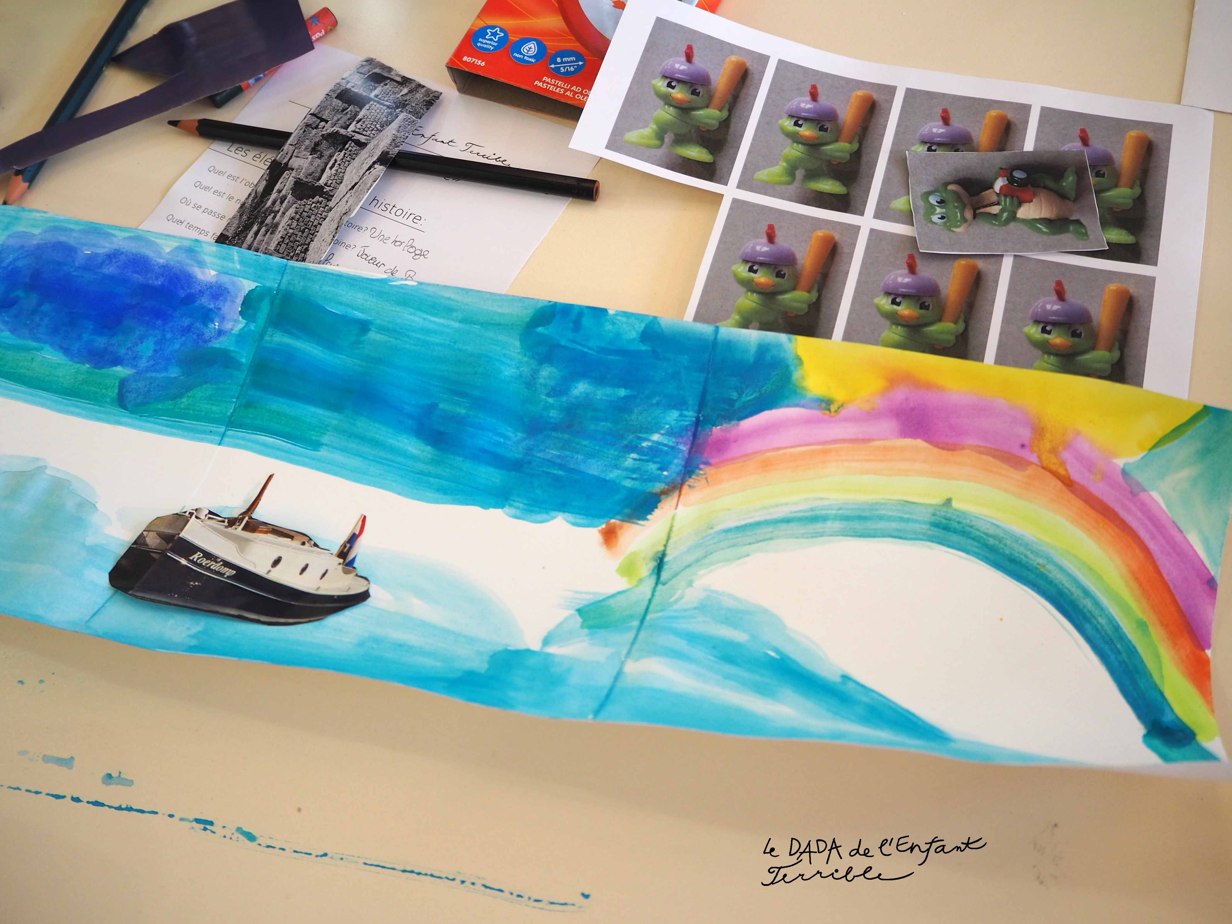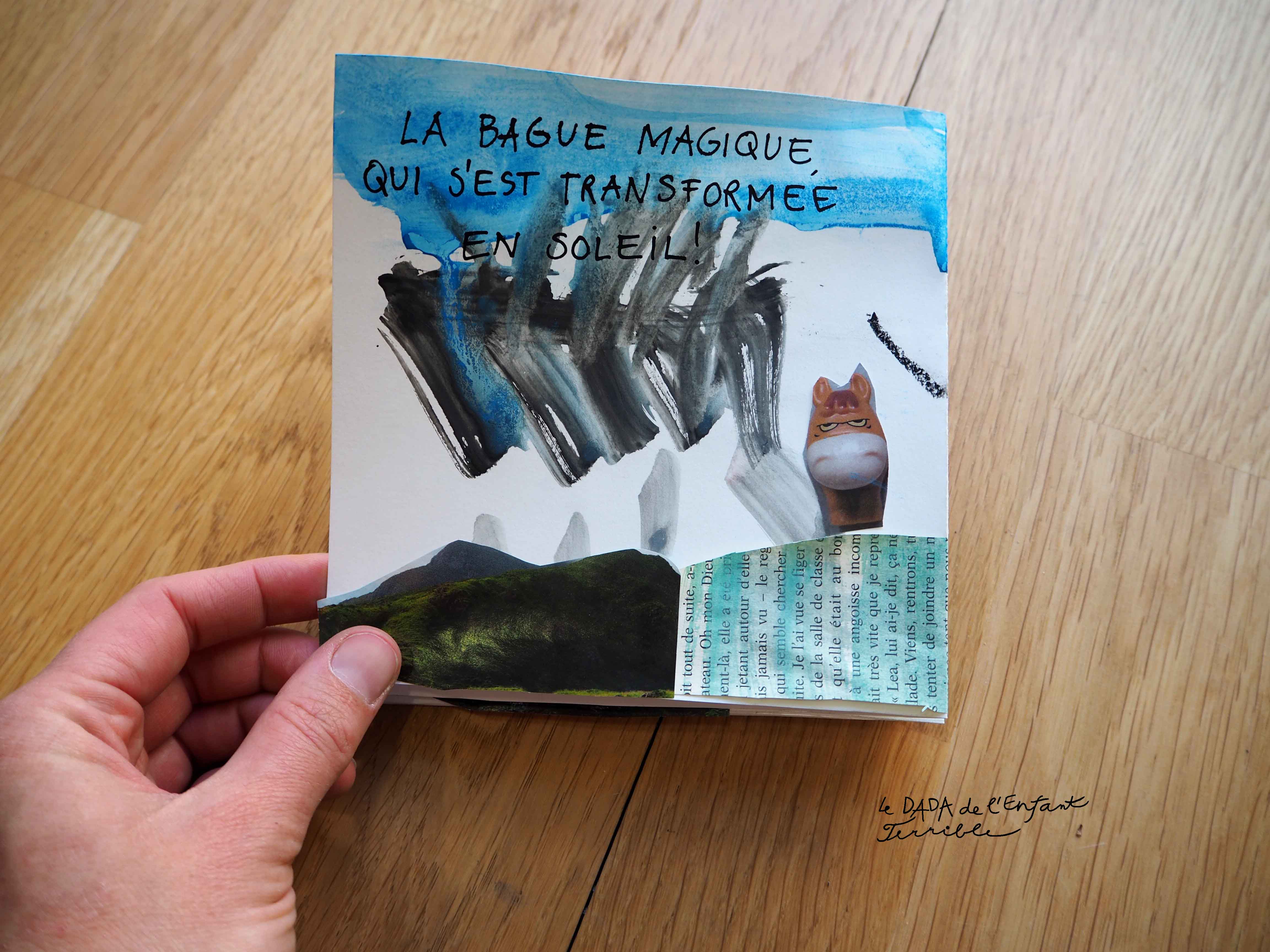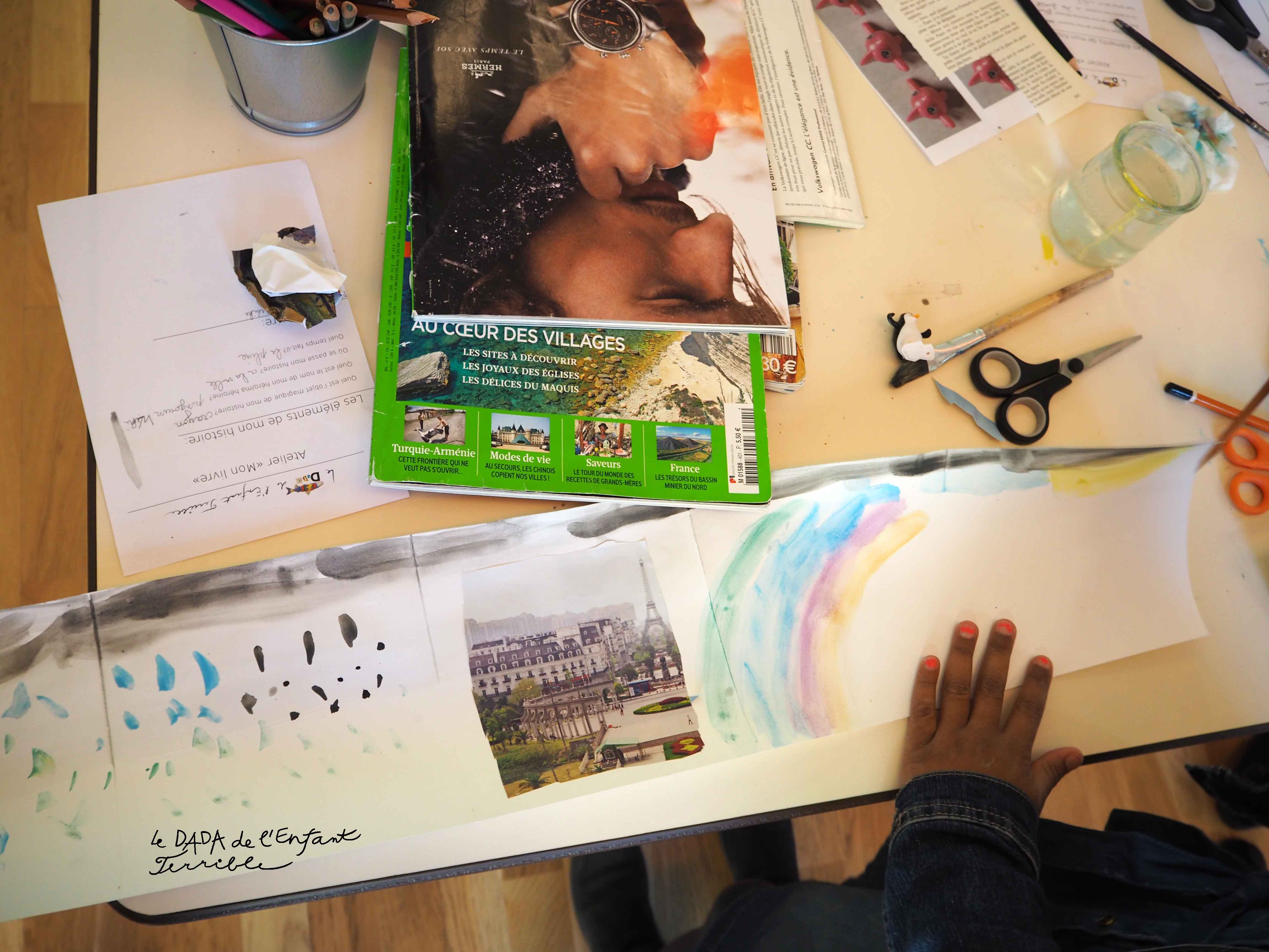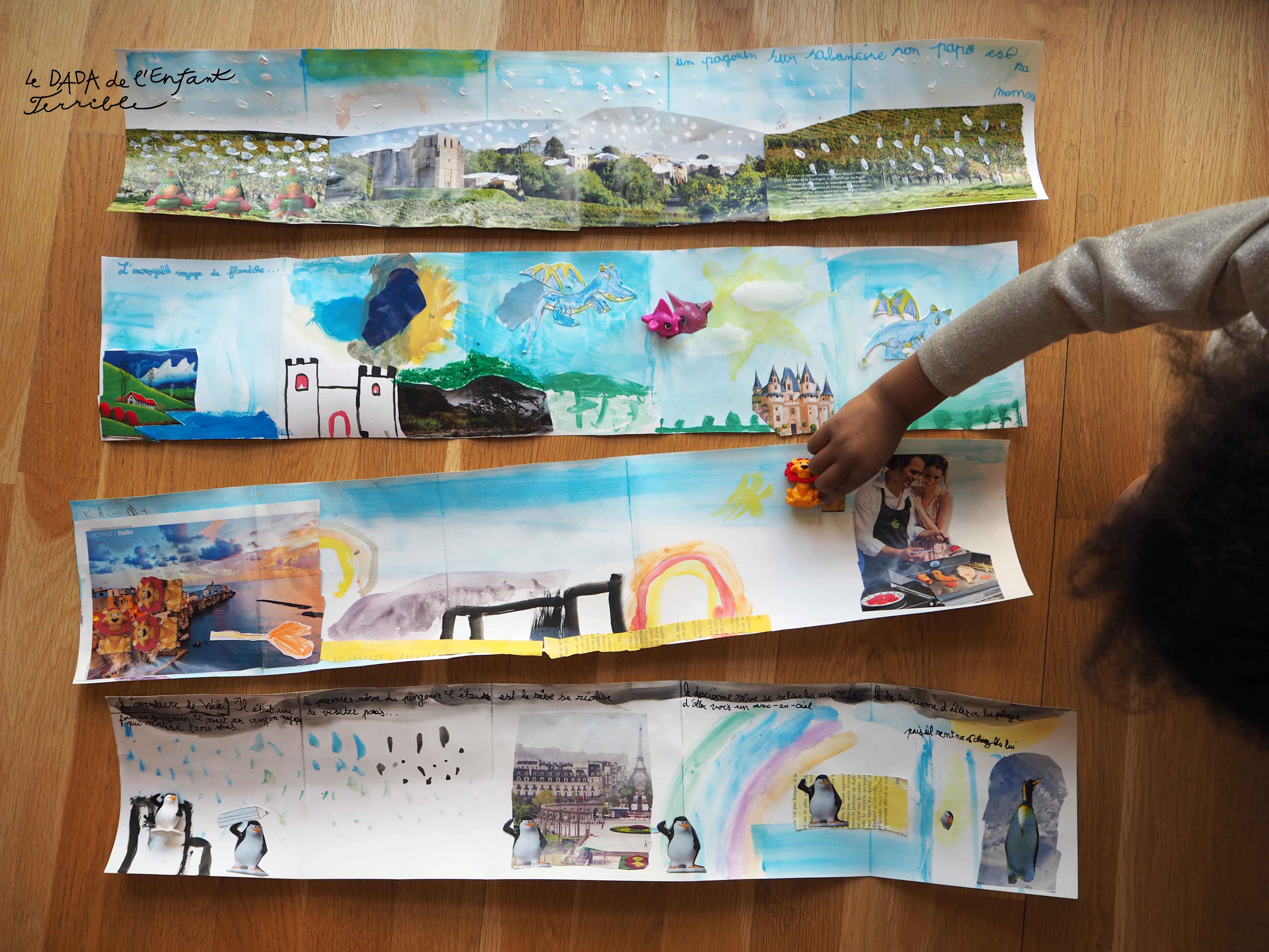 Création des livres par les enfants accompagnés ou non par leurs parents. Atelier de 2 heures: construction d’histoires à partir de personnages récupérés auprès de lecteurs de la médiathèque. Pour la fabrication des livres nous avons réutilisé de vieux magazines et livres de la médiathèque. Les personnages principaux et d’autres éléments des histoires ont été tirés au sort. Chaque enfant a pu imaginer une histoire et fabriquer son propre livre.
