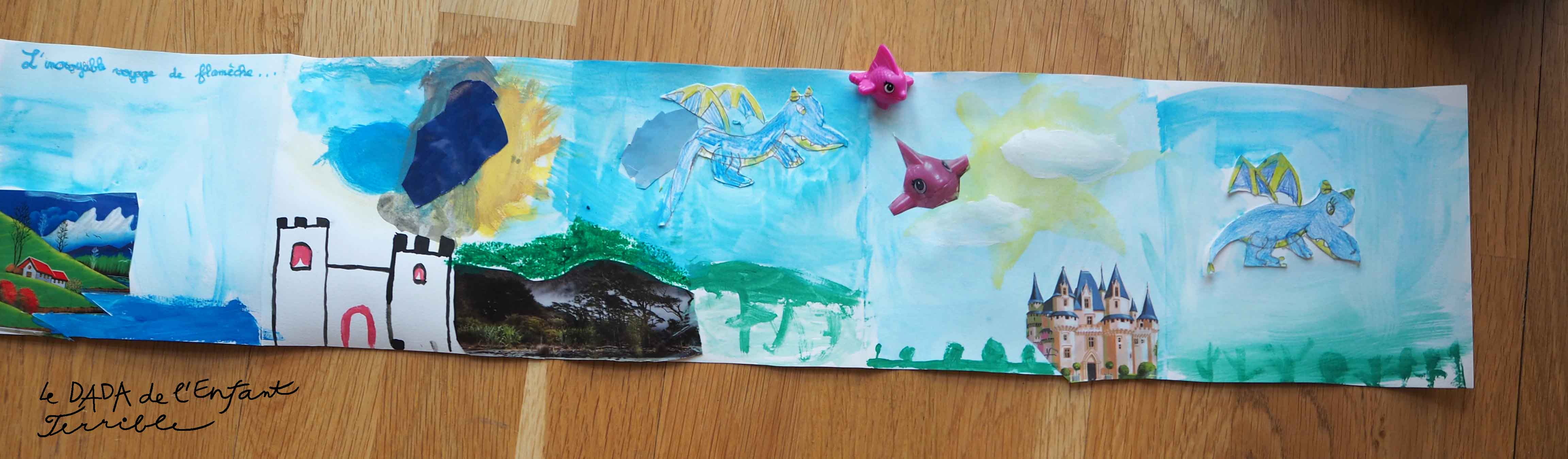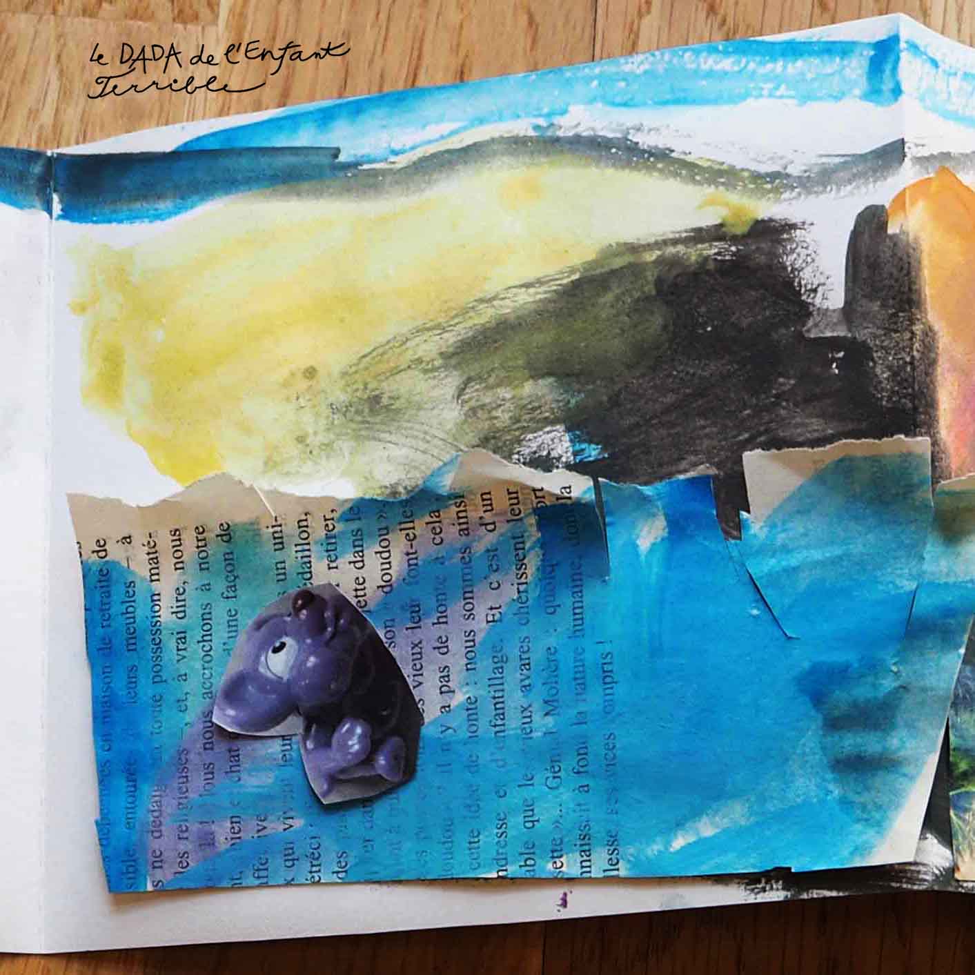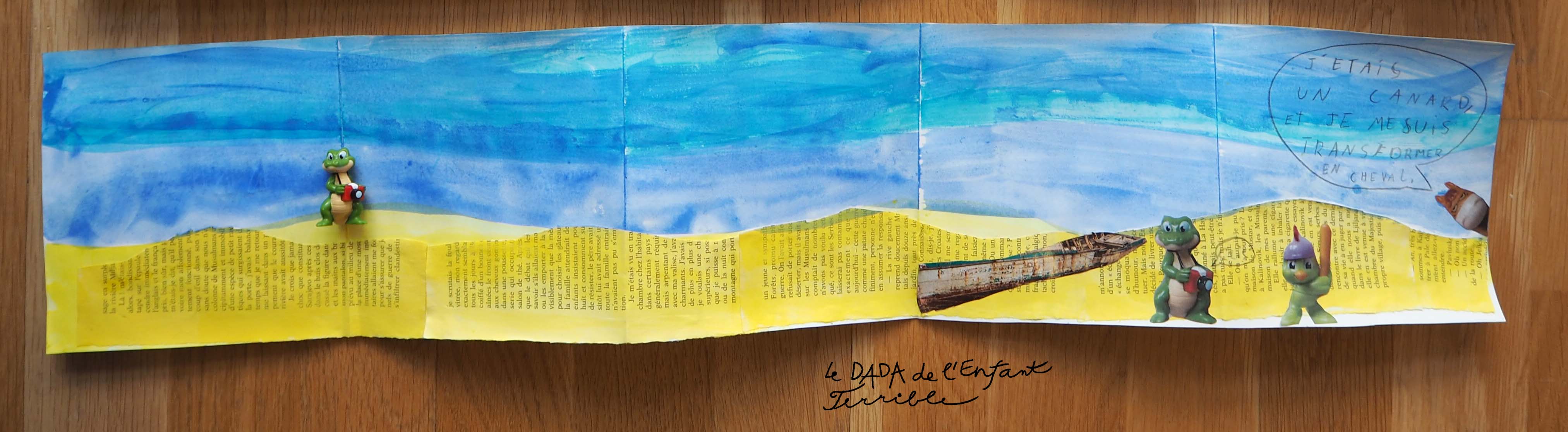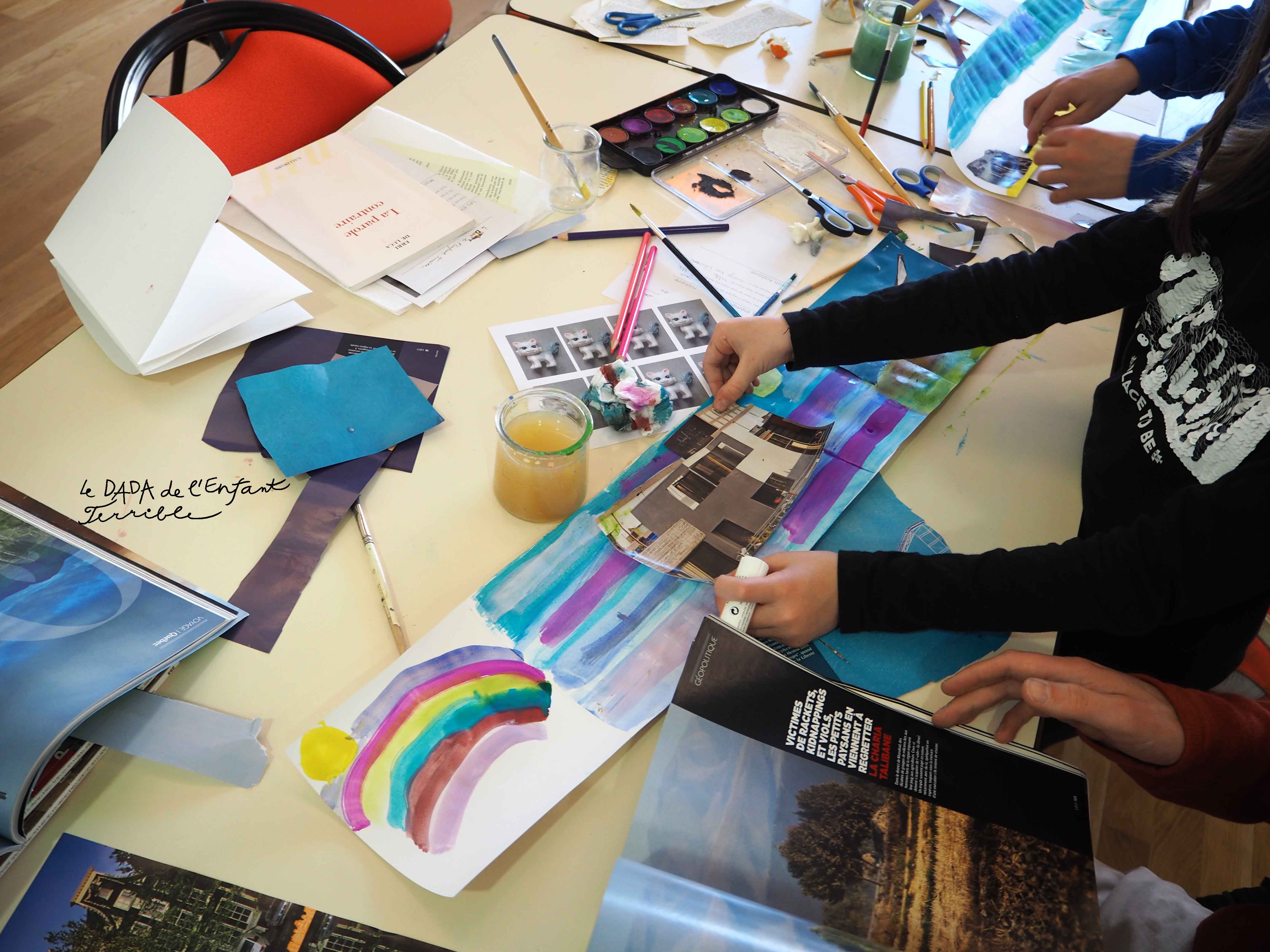Création des livres par les enfants accompagnés ou non par leurs parents. Atelier de 2 heures: construction d’histoires à partir de personnages récupérés auprès de lecteurs de la médiathèque. Pour la fabrication des livres nous avons réutilisé de vieux magazines et livres de la médiathèque. Les personnages principaux et d’autres éléments des histoires ont été tirés au sort. Chaque enfant a pu imaginer une histoire et fabriquer son propre livre.