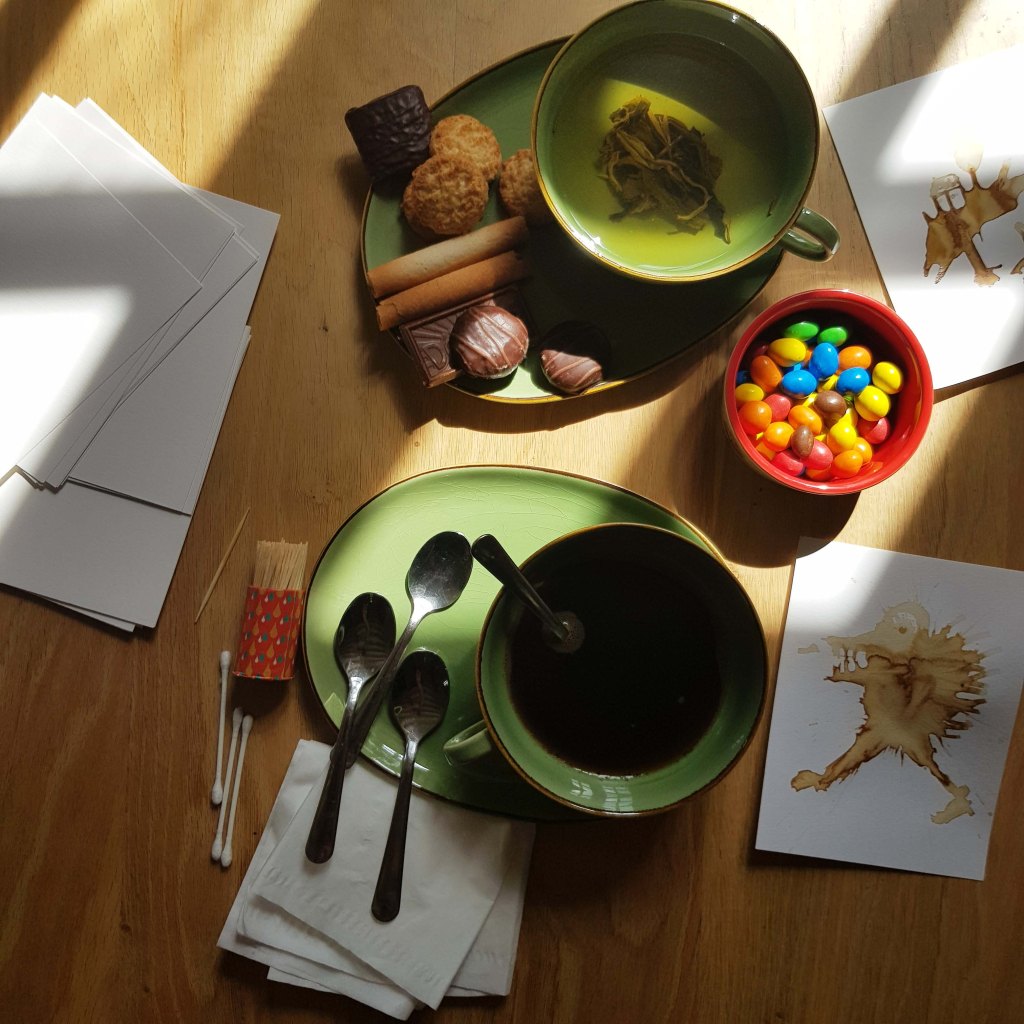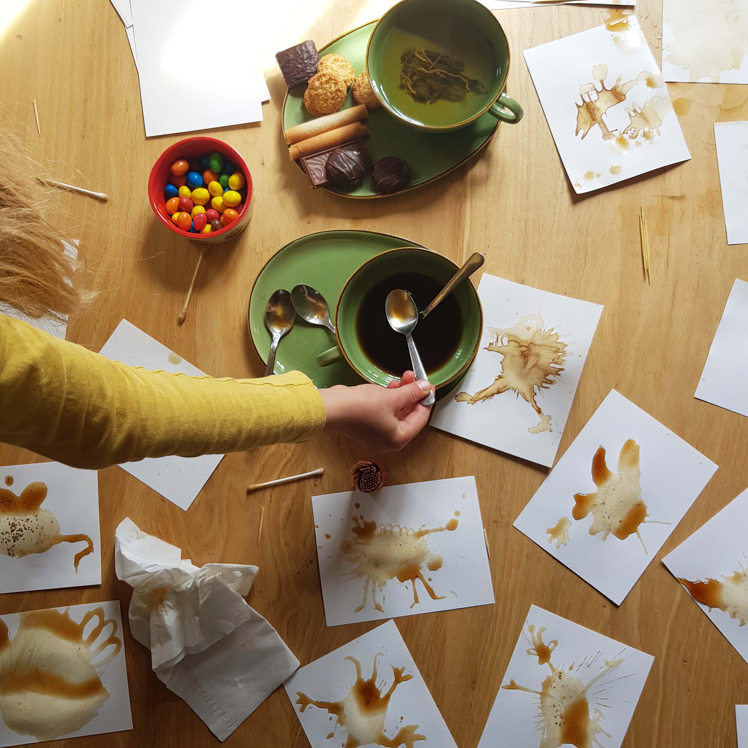 Un atelier au café, une pause créative accompagnée de petits gâteaux au chocolat.