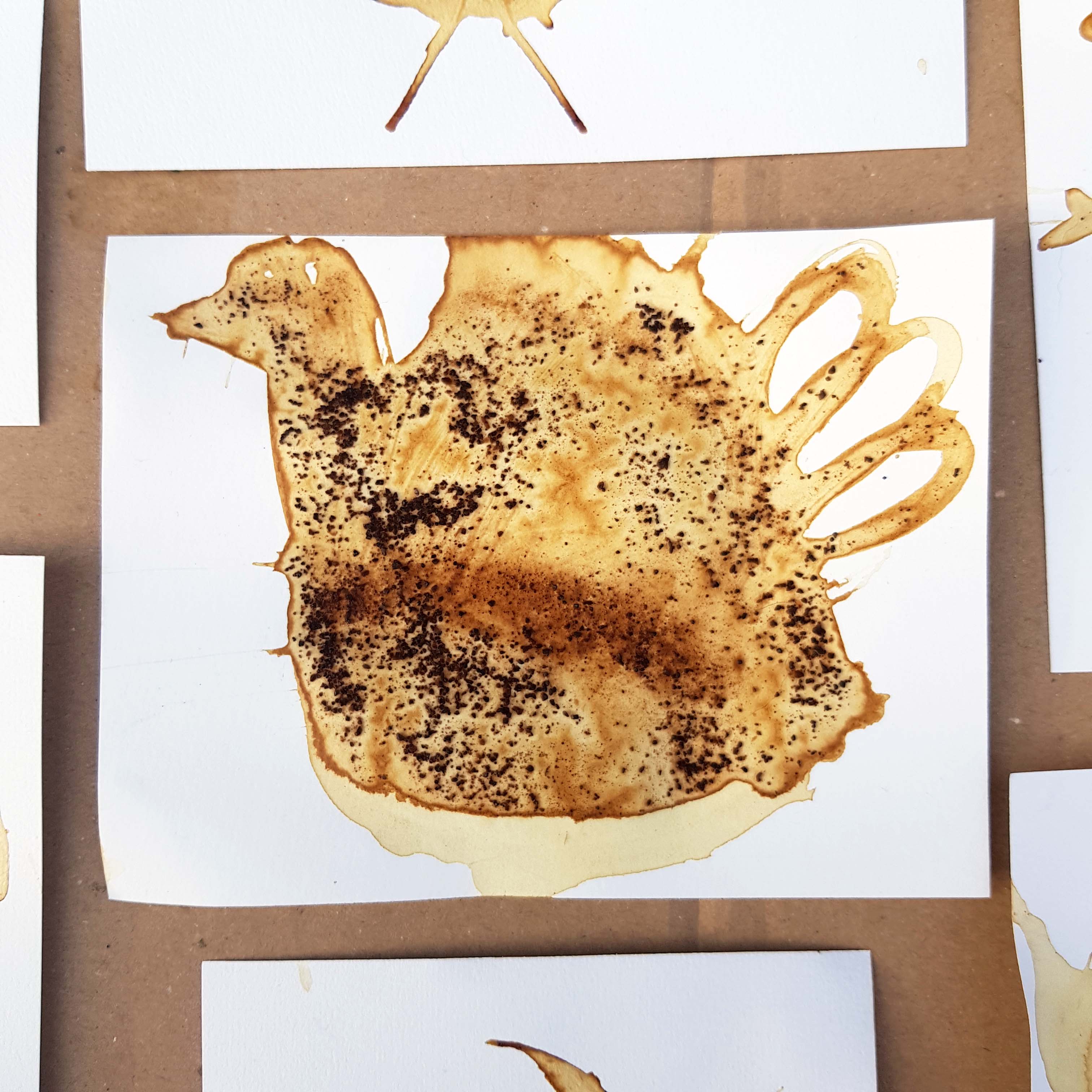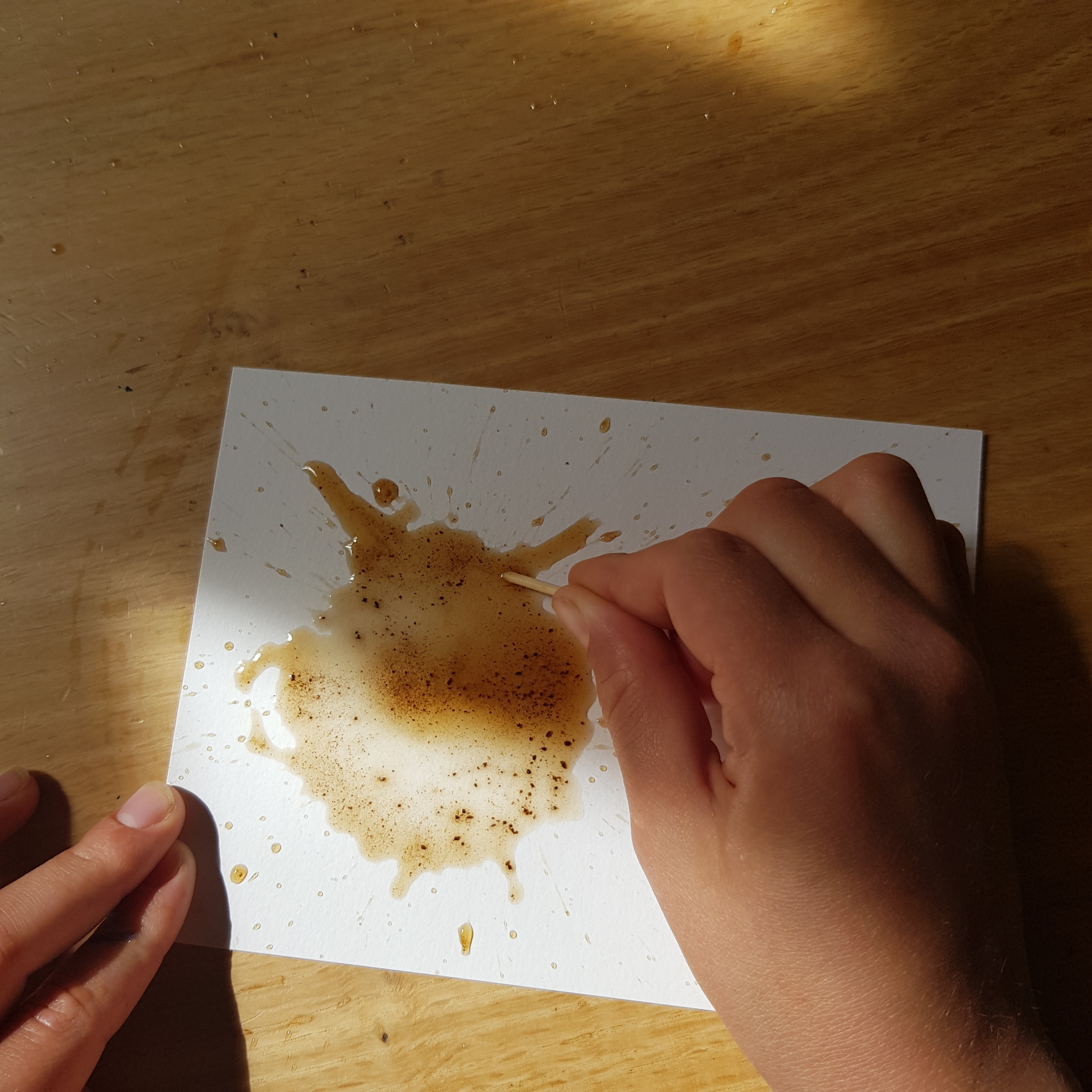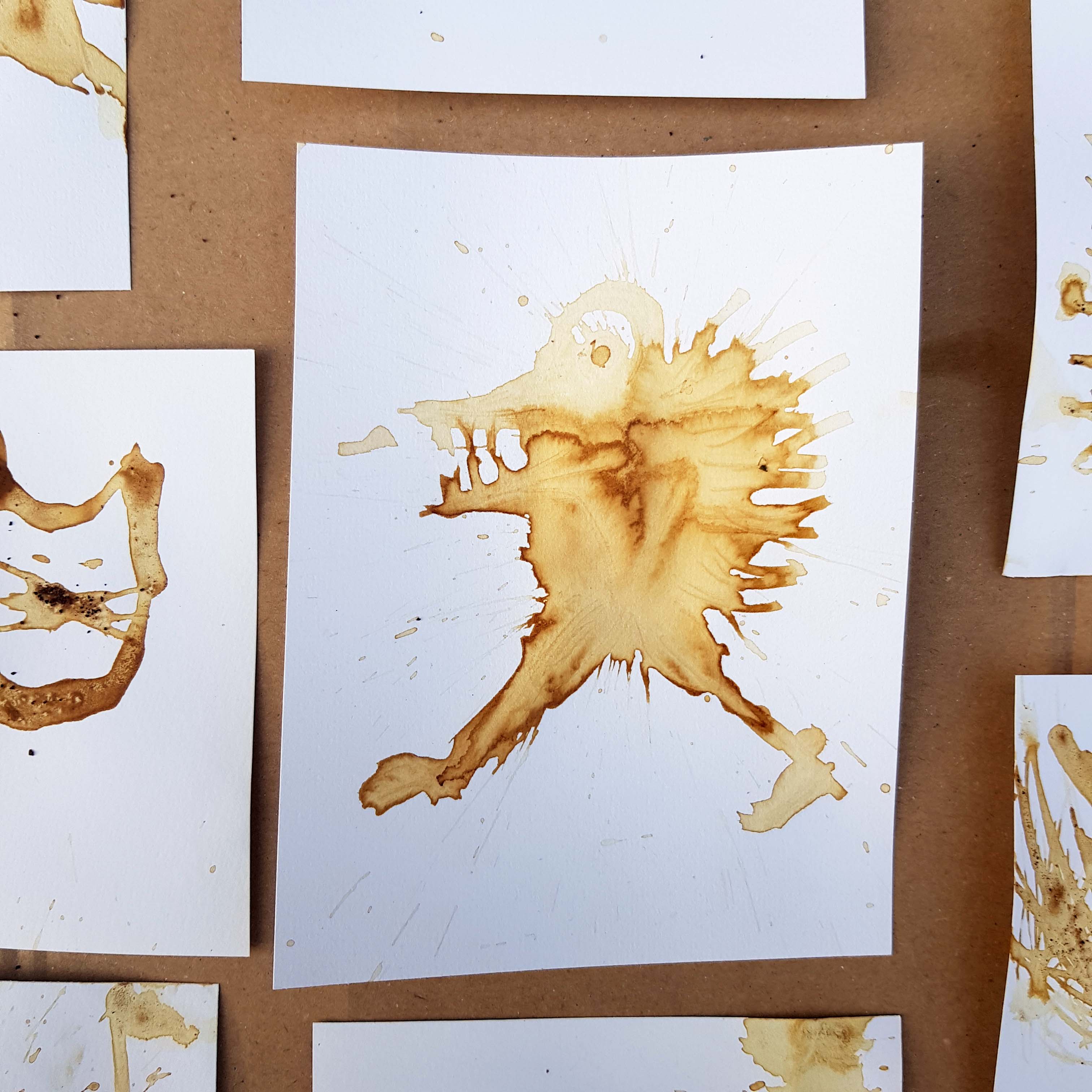 Important: Ne levez pas vos dessins! (et oui, le café coule!) Laissez vos œuvres sécher à plat.