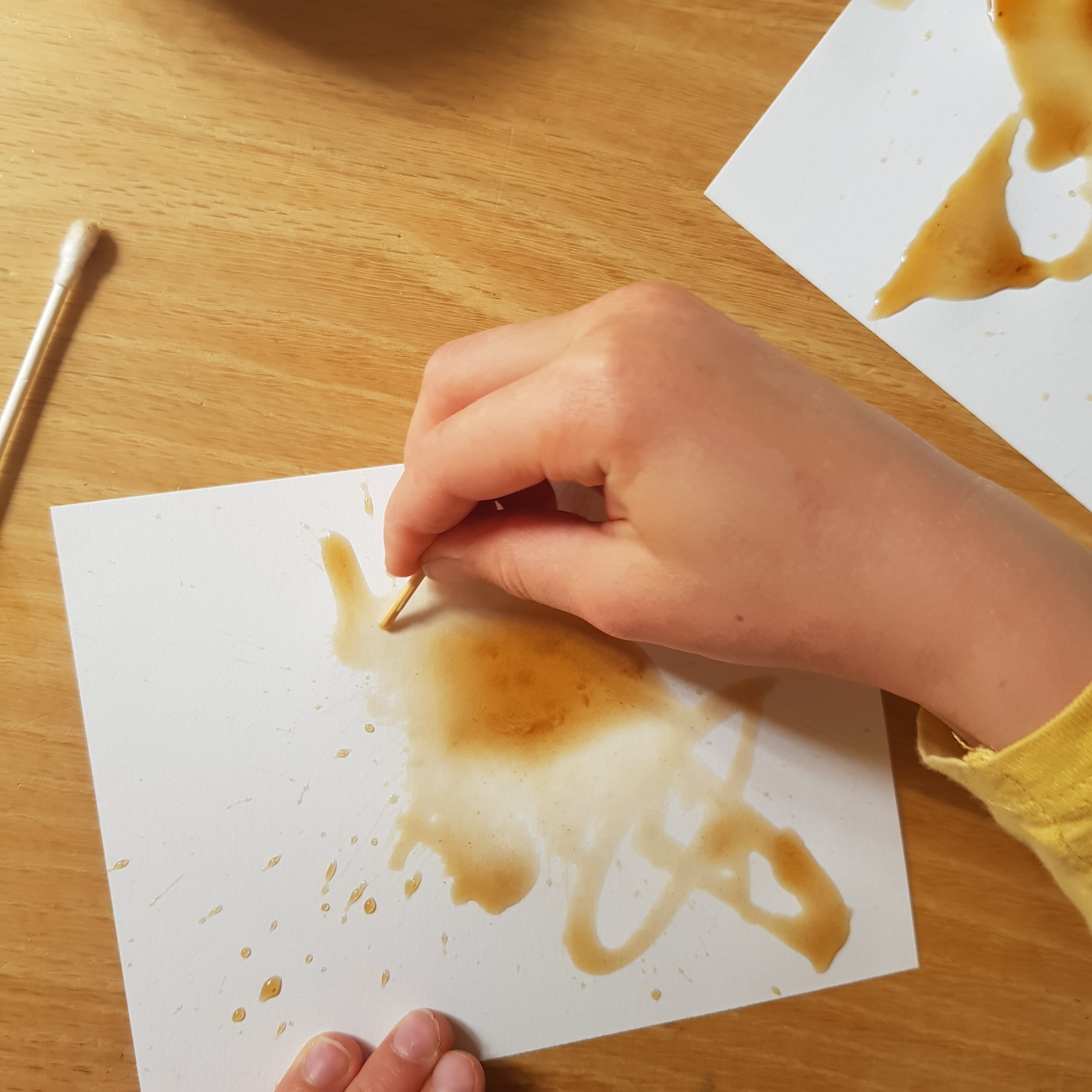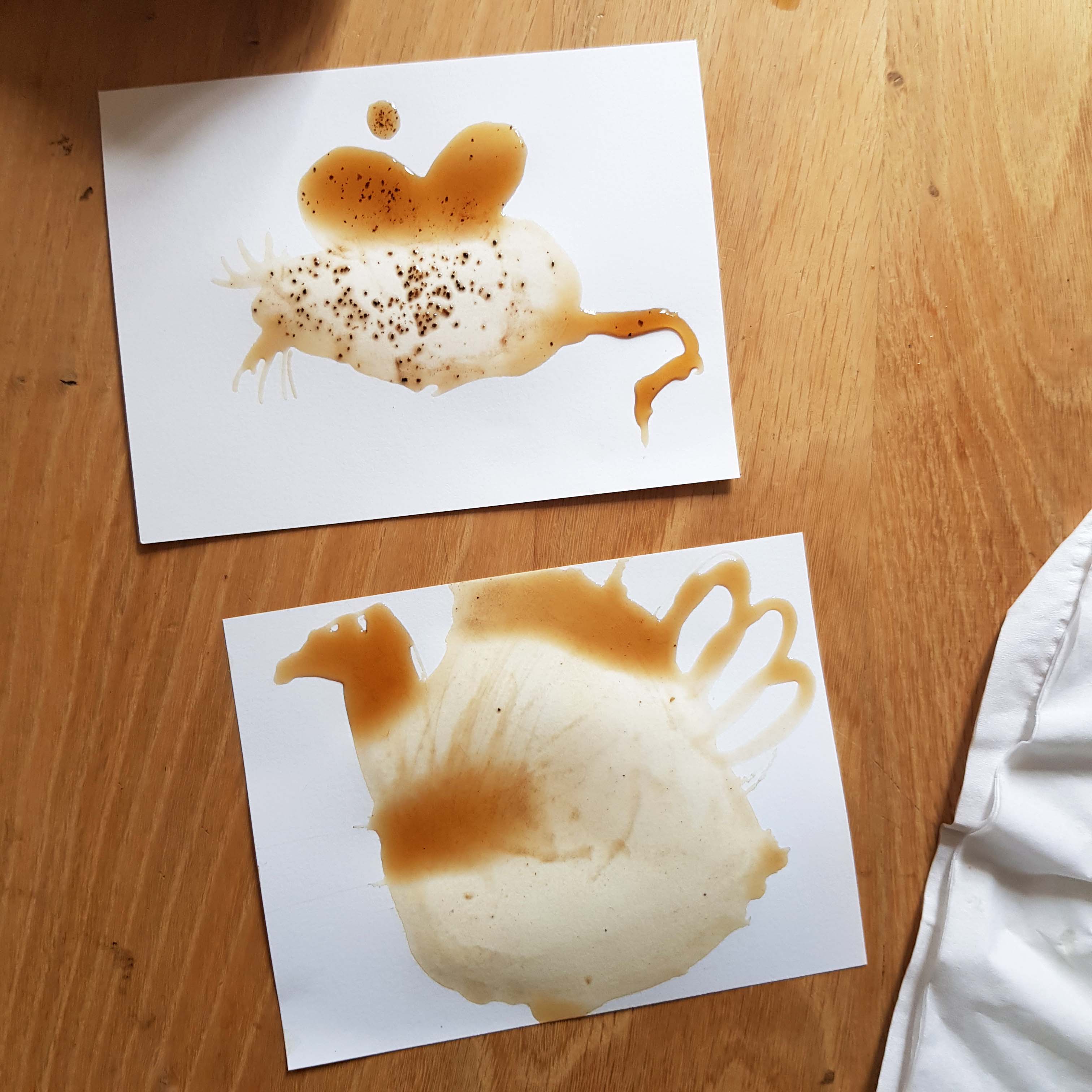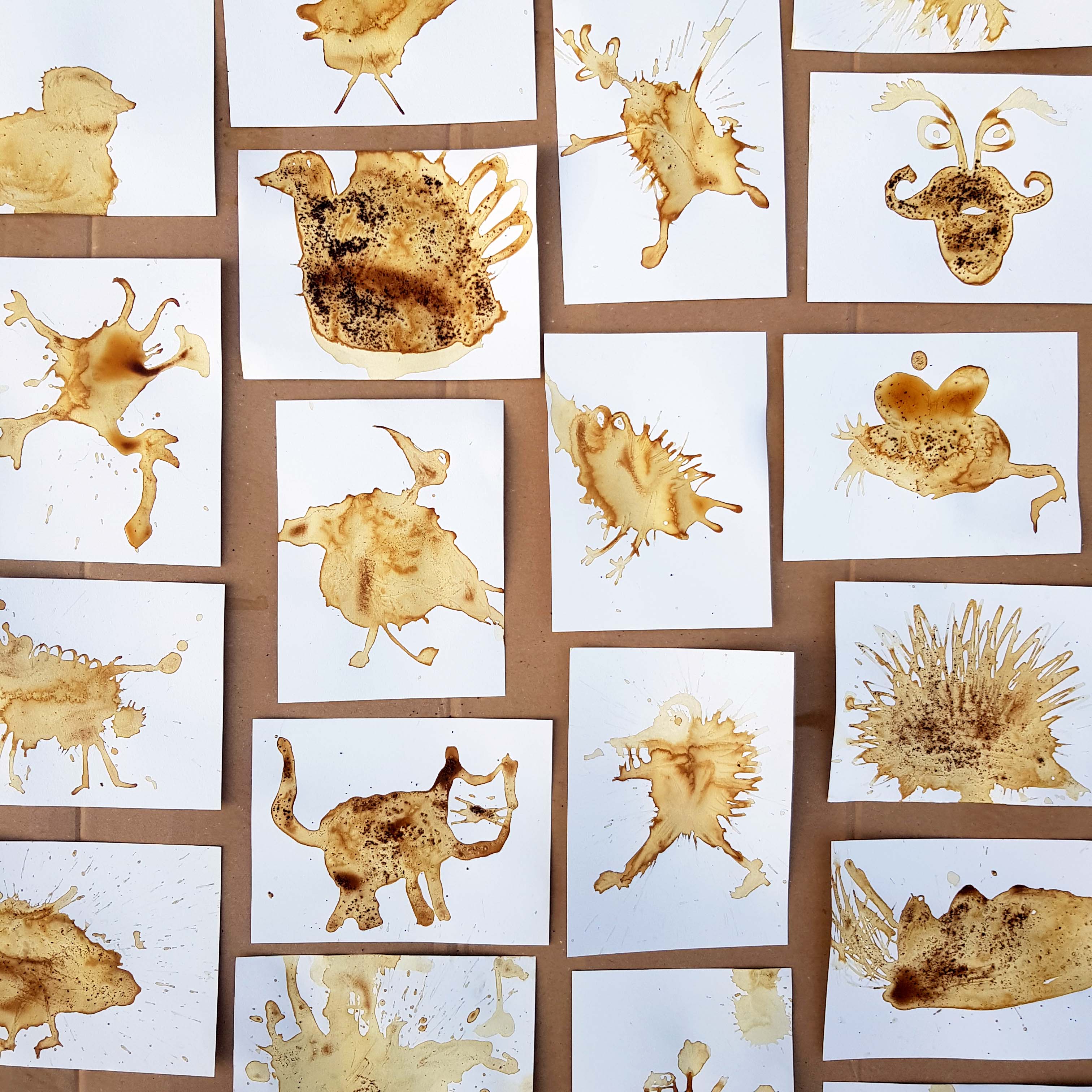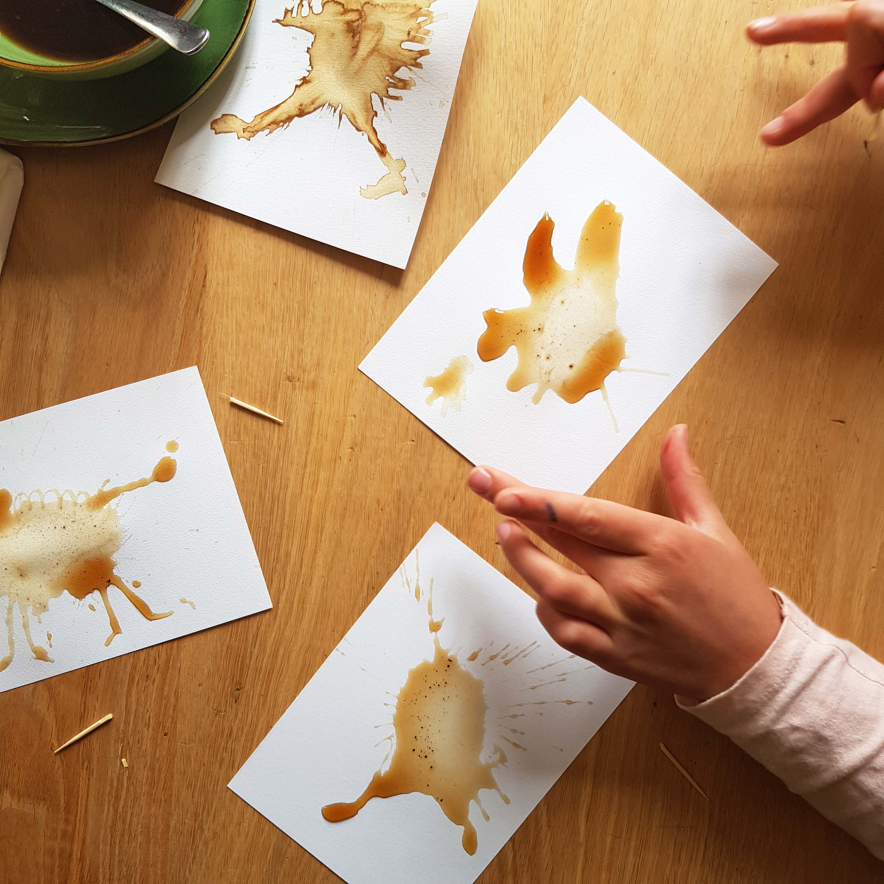 Important: Ne levez pas vos dessins! (et oui, le café coule!) Laissez vos œuvres sécher à plat.