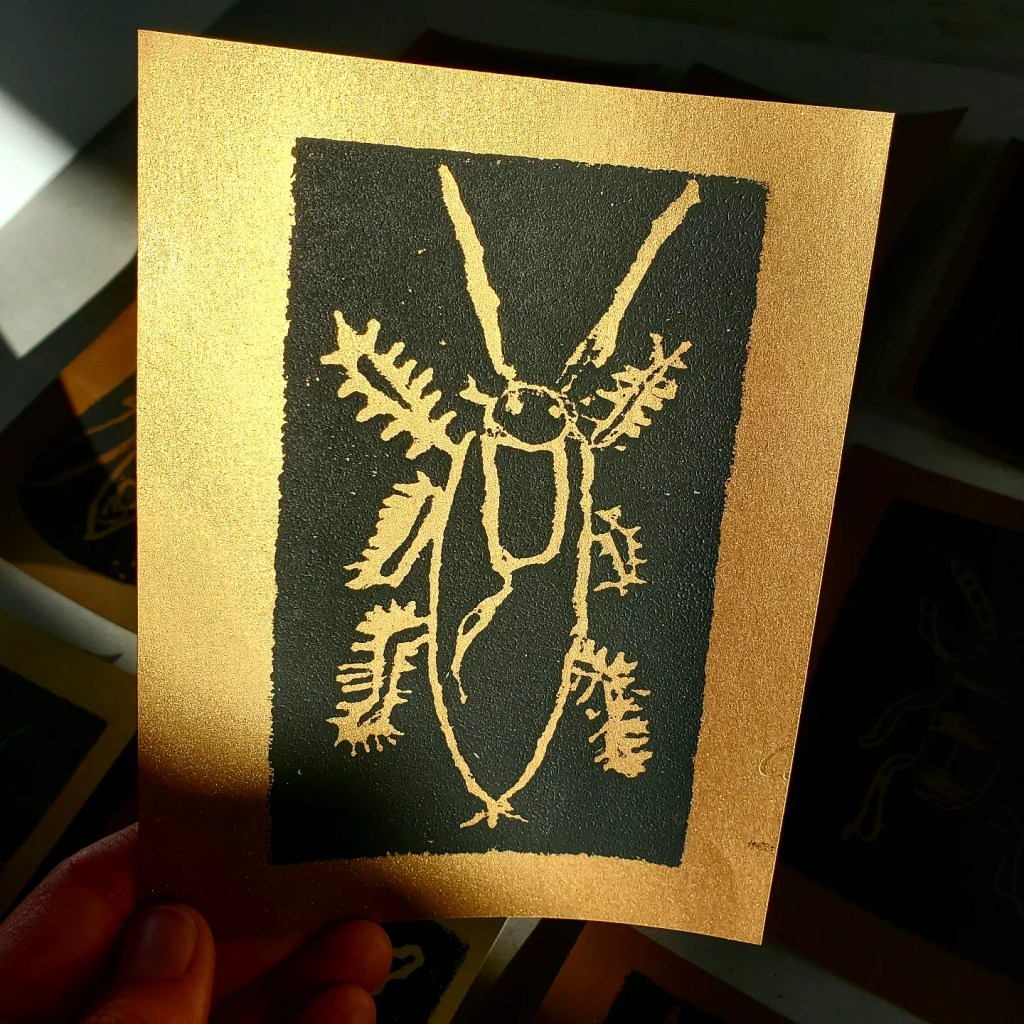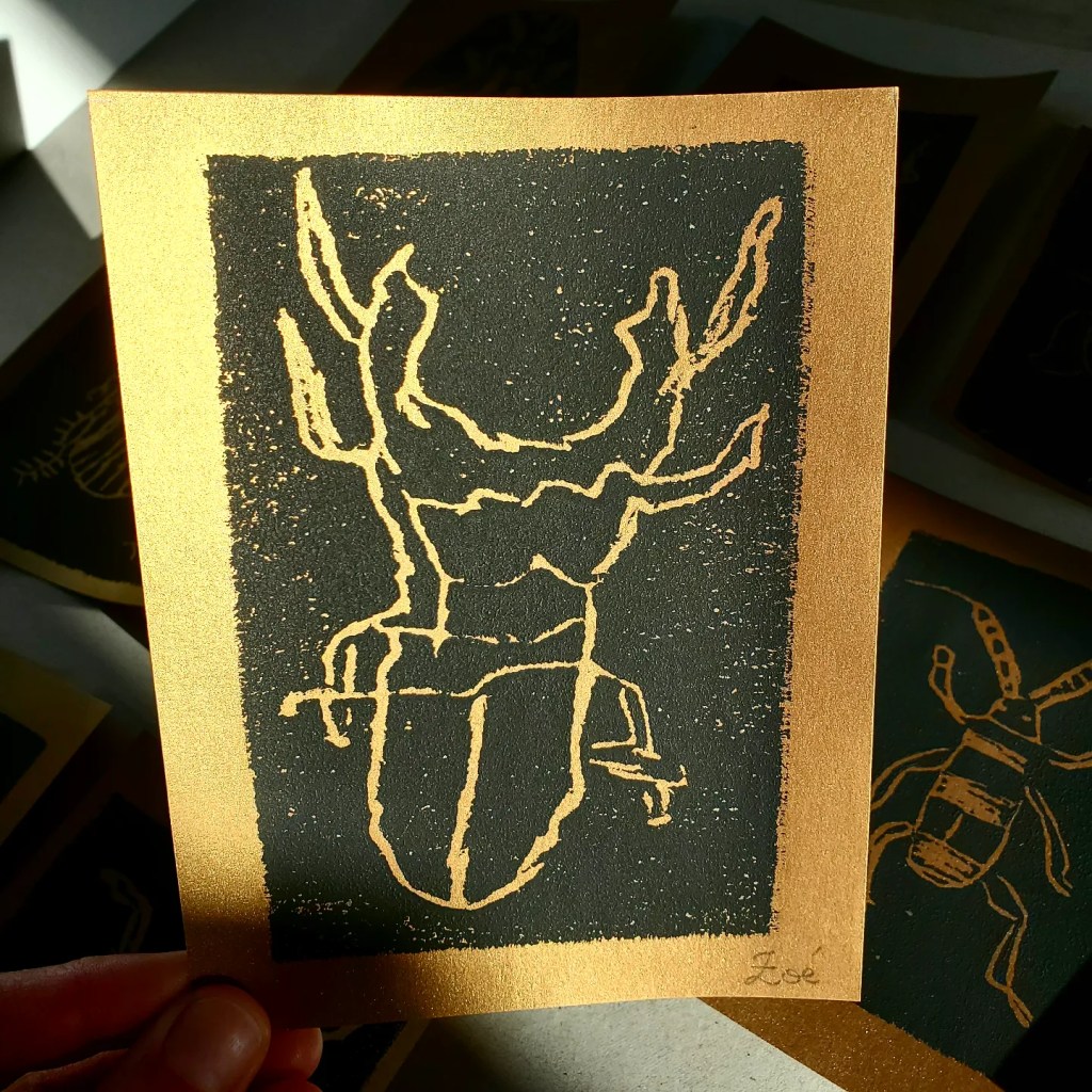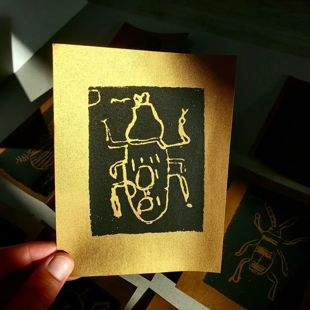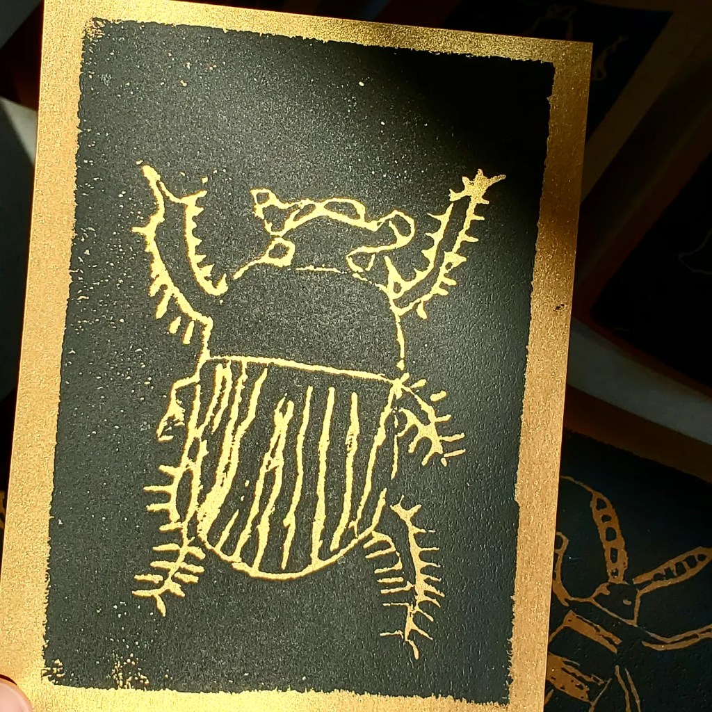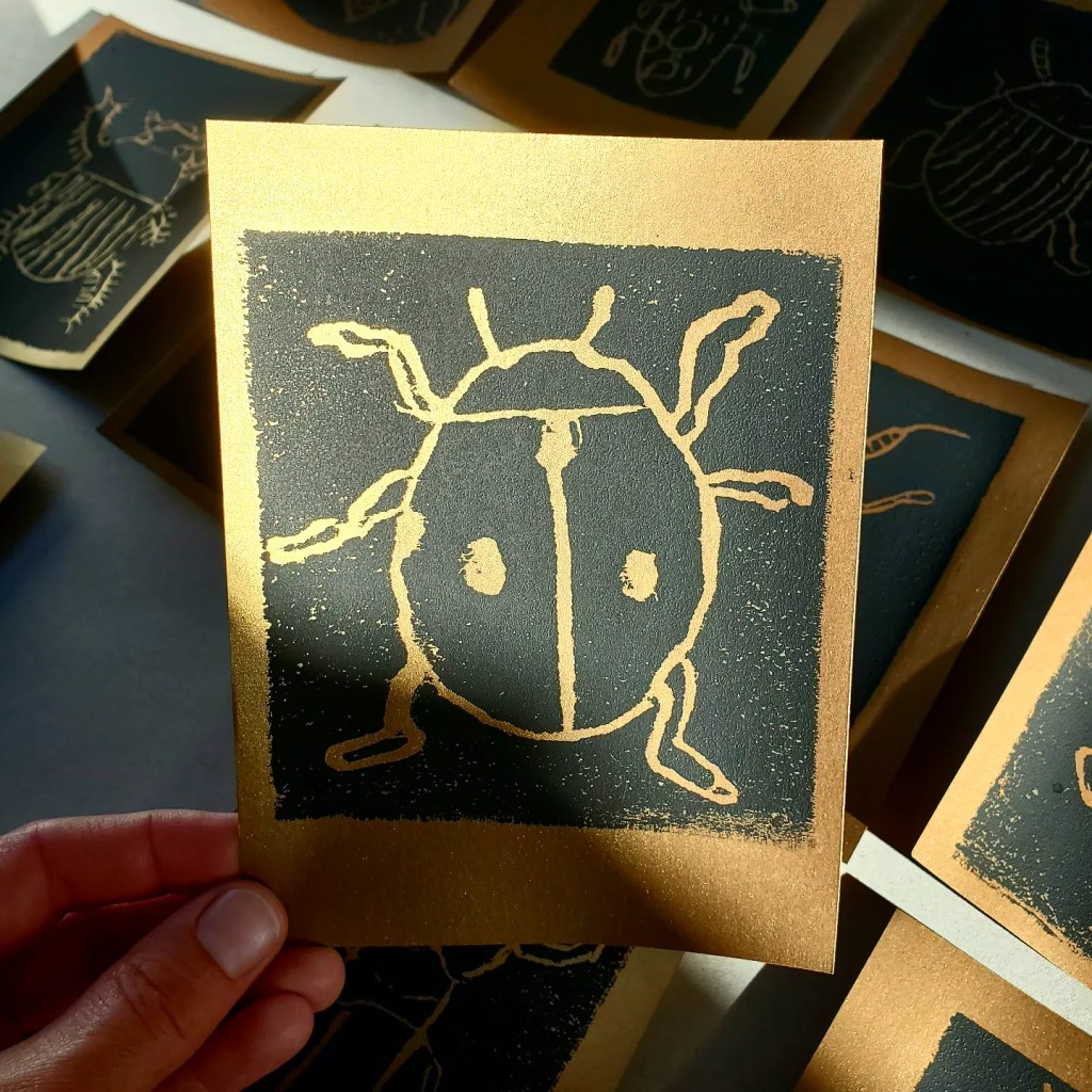 Des ateliers de tampons de papillons et de scarabées dans le cadre des séances préparatoires à la fresque murale de l’école primaire de Cagny (14).