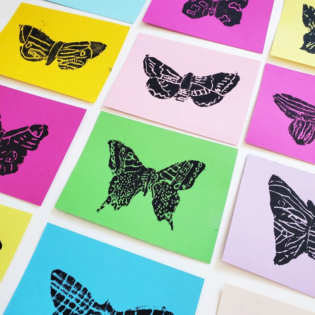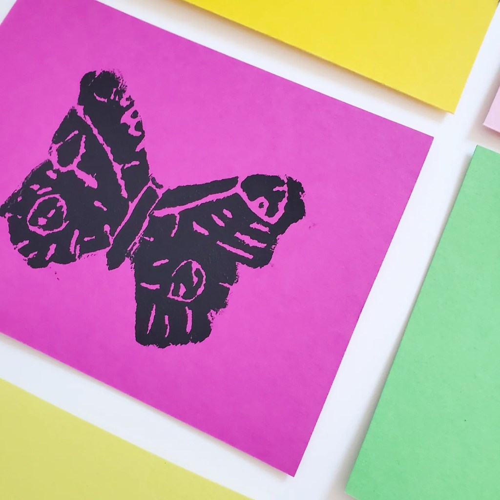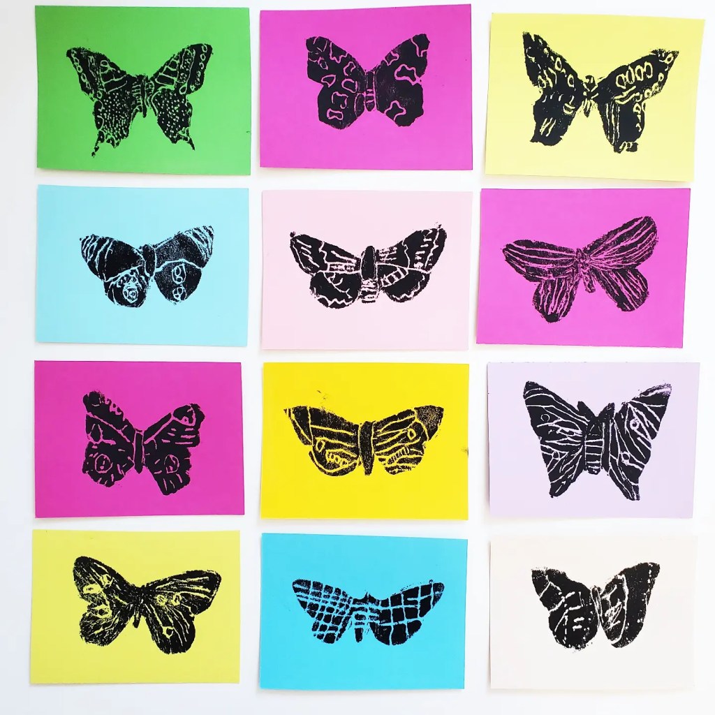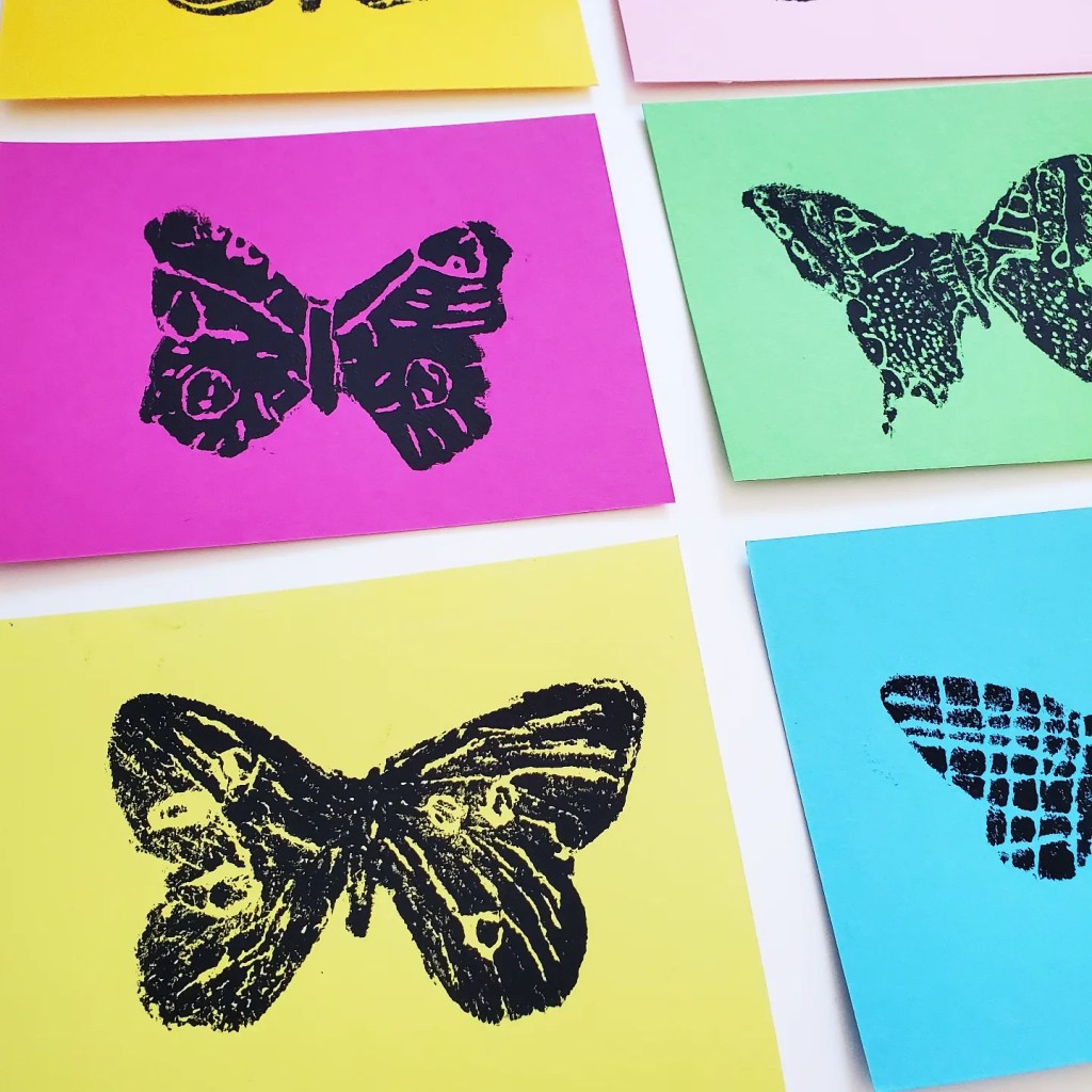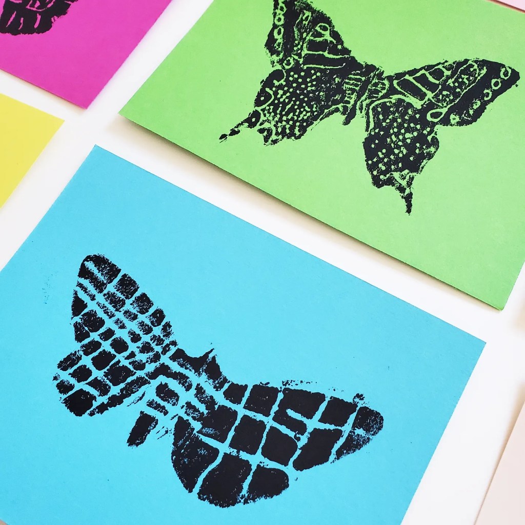 Papillons gravés dans la mousse et imprimés par les élèves de la classe de CP/CE1: