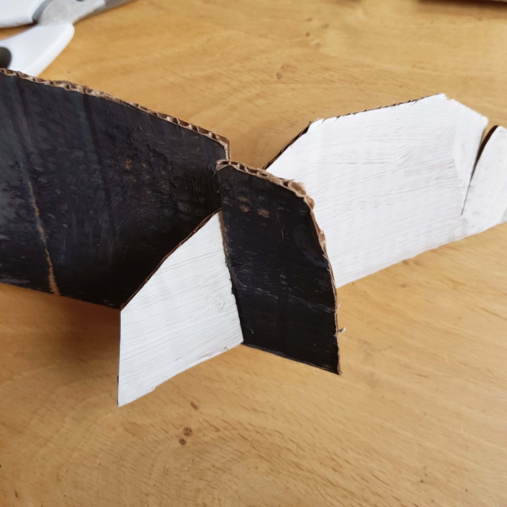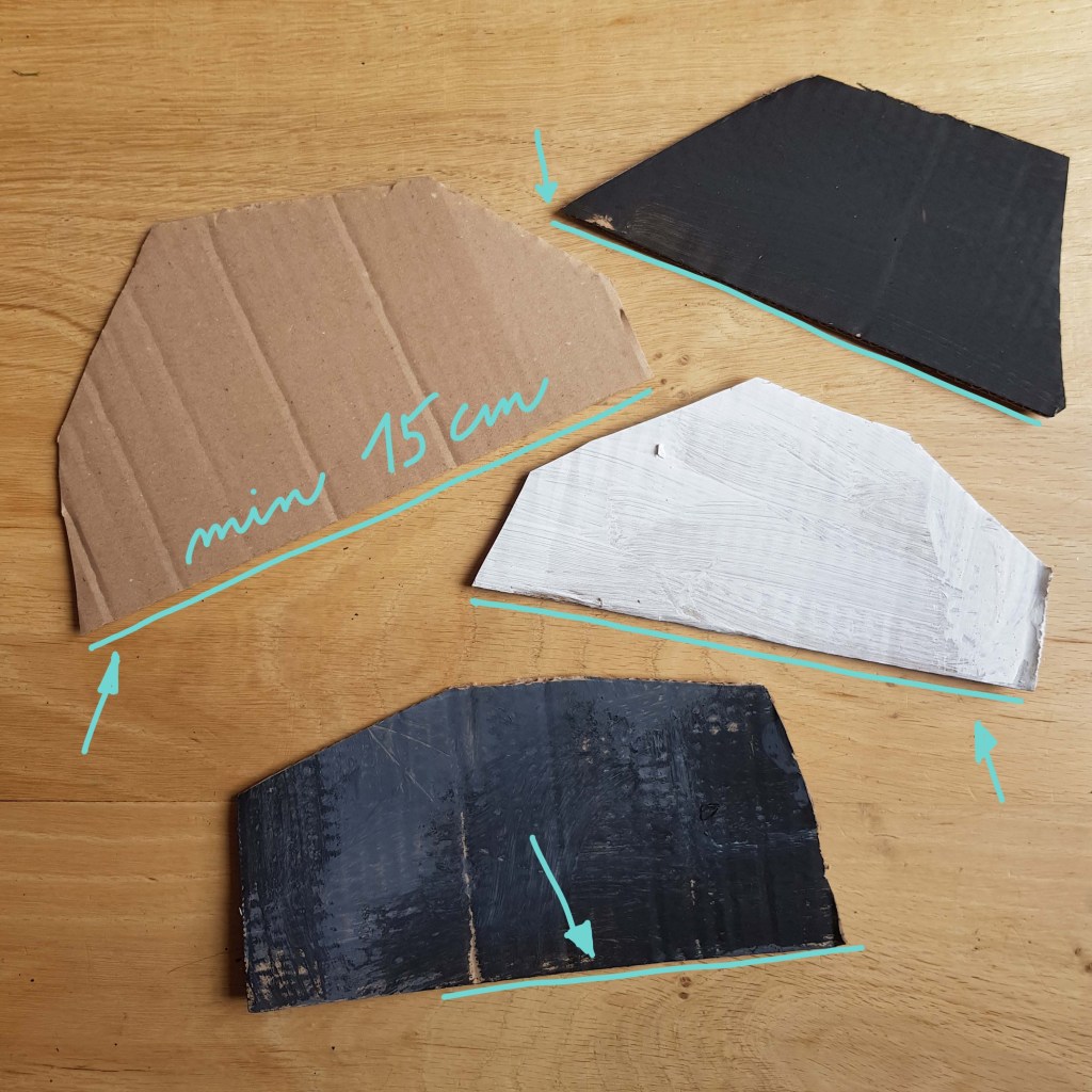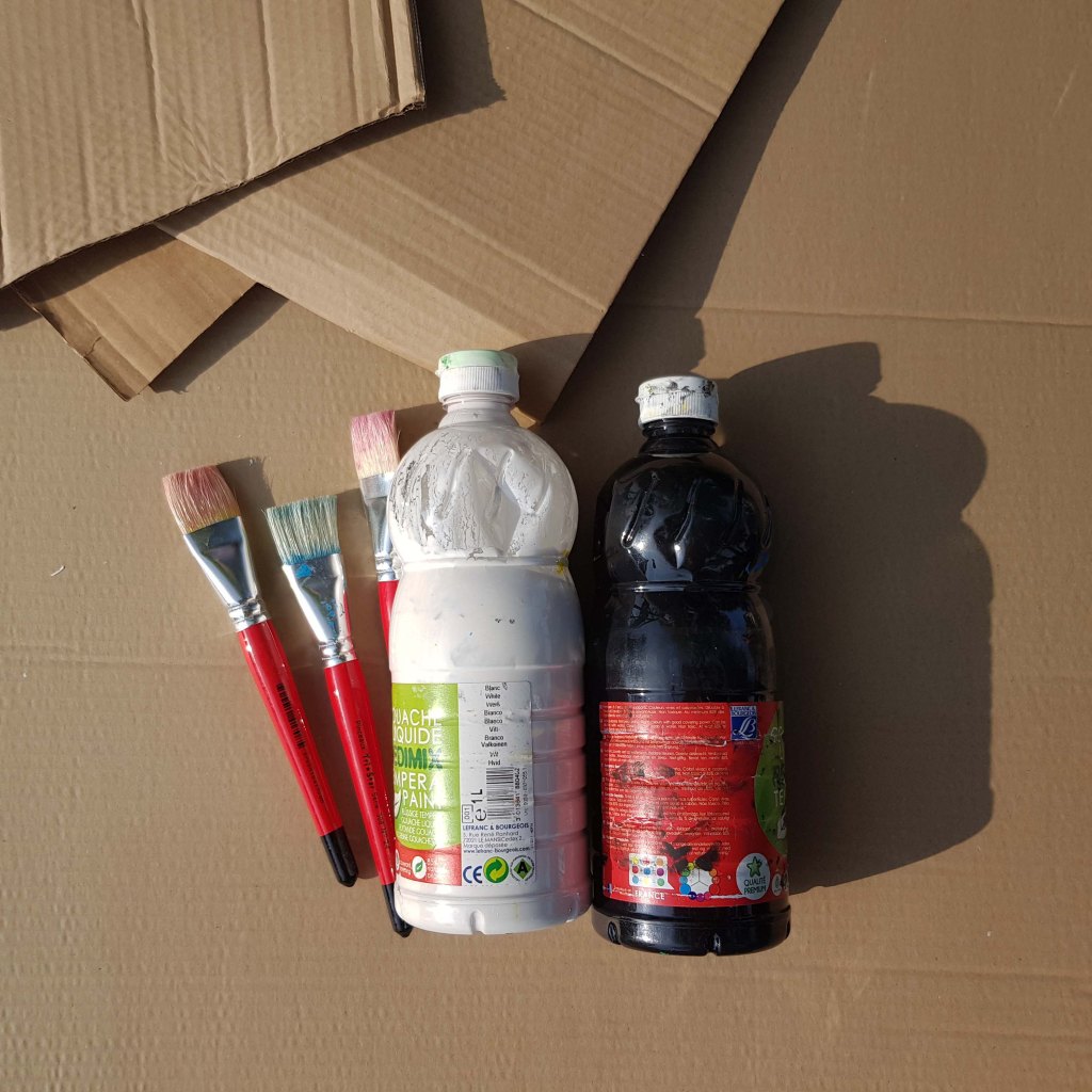 Découpez le(s) carton(s) en plusieurs grands morceaux et peignez-les. Nous avons utilisé du blanc et du noir mais rien ne vous empêche d’utiliser les couleurs que vous souhaitez!
