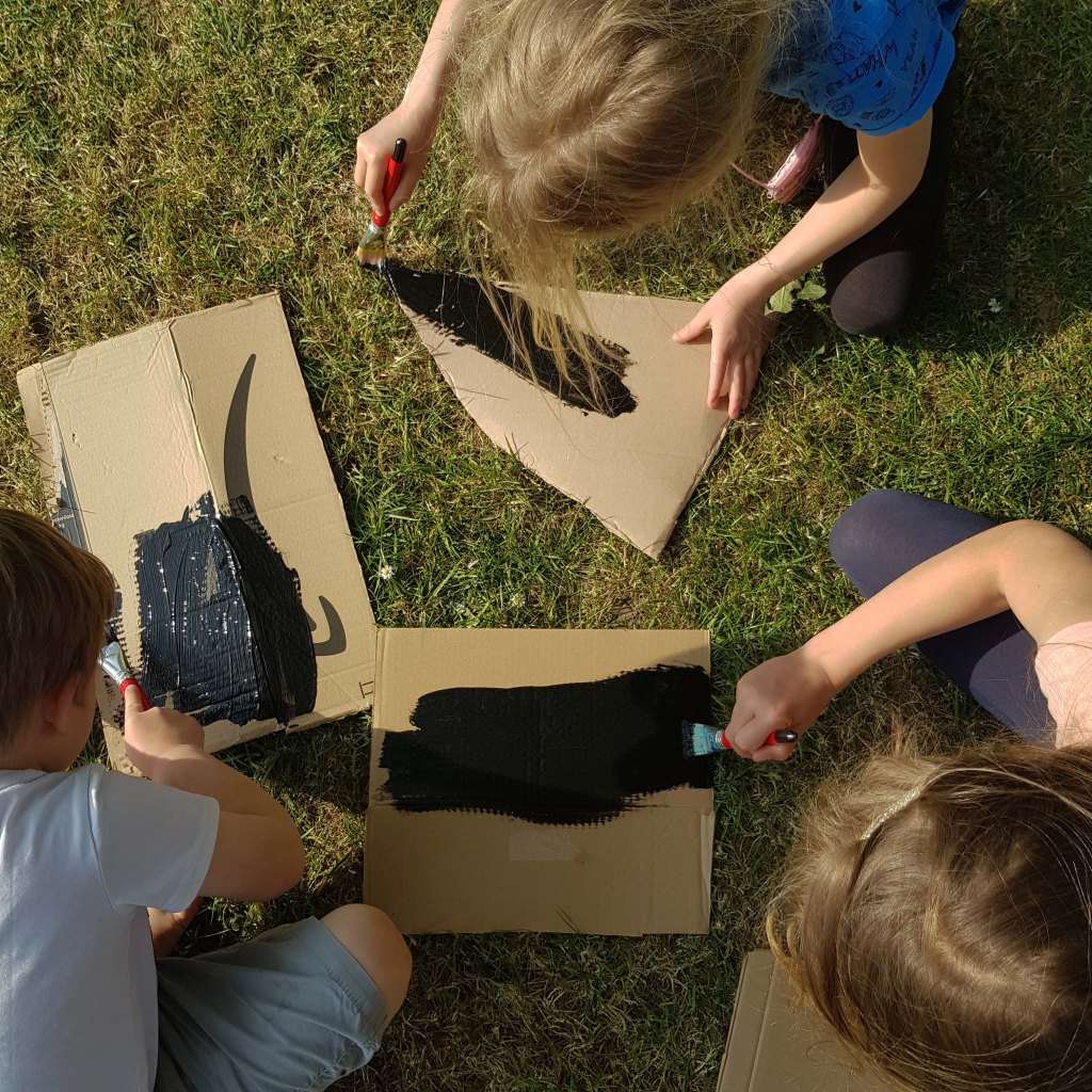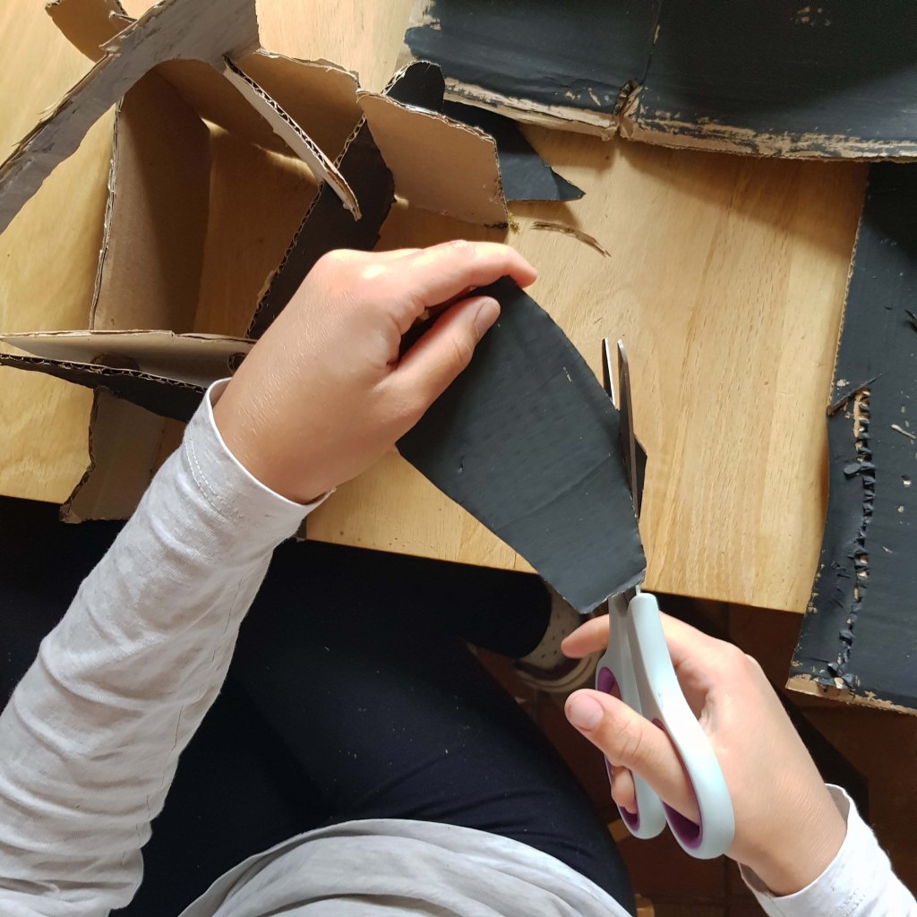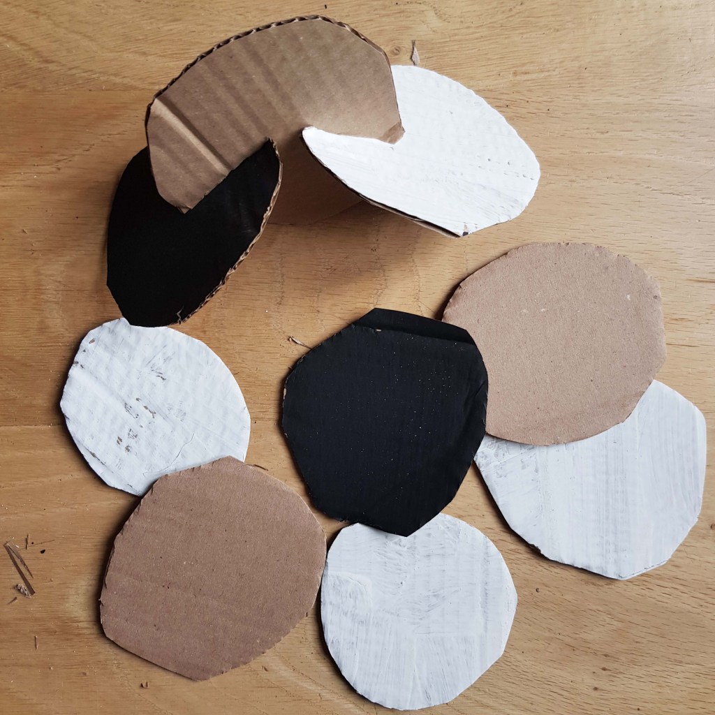 Découpez le(s) carton(s) en plusieurs grands morceaux et peignez-les. Nous avons utilisé du blanc et du noir mais rien ne vous empêche d’utiliser les couleurs que vous souhaitez!