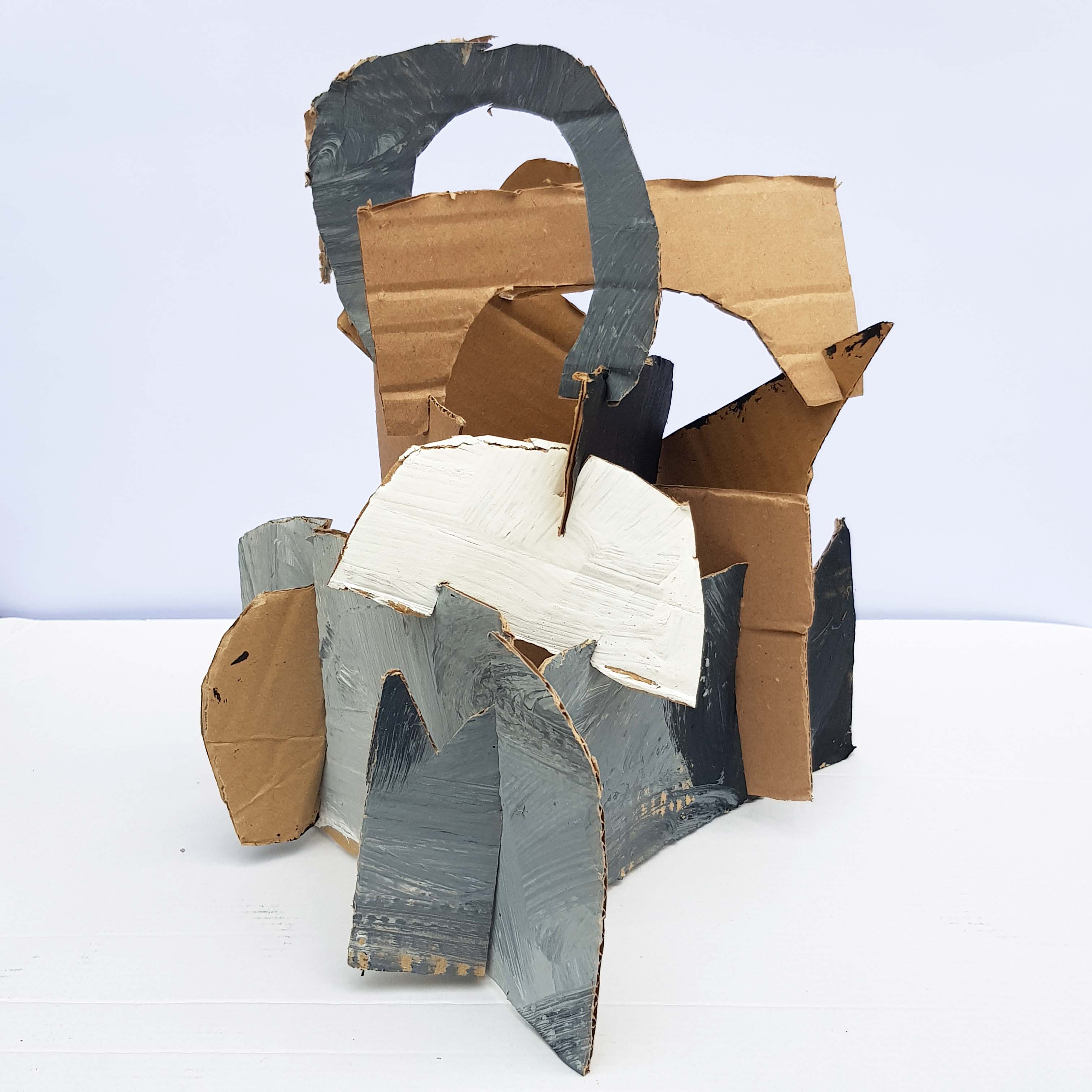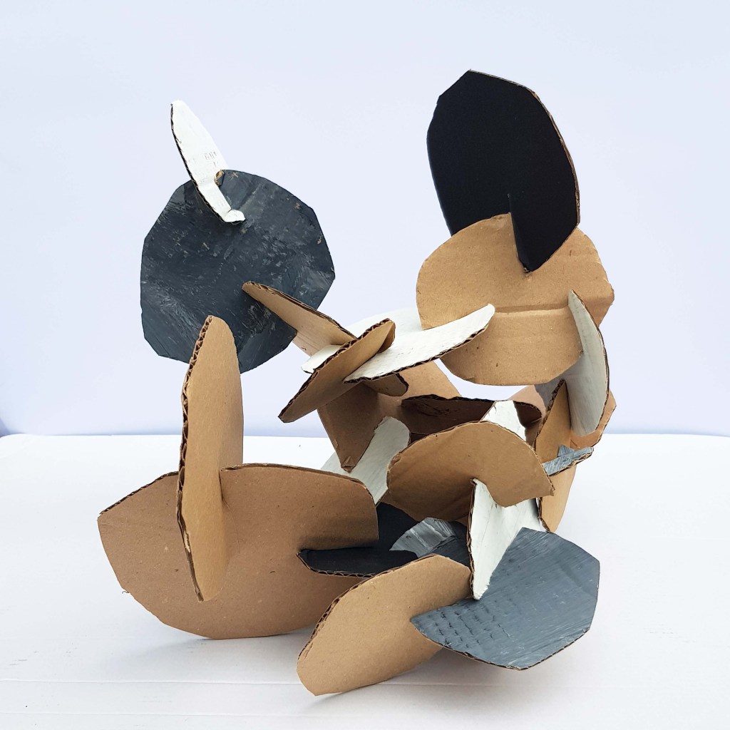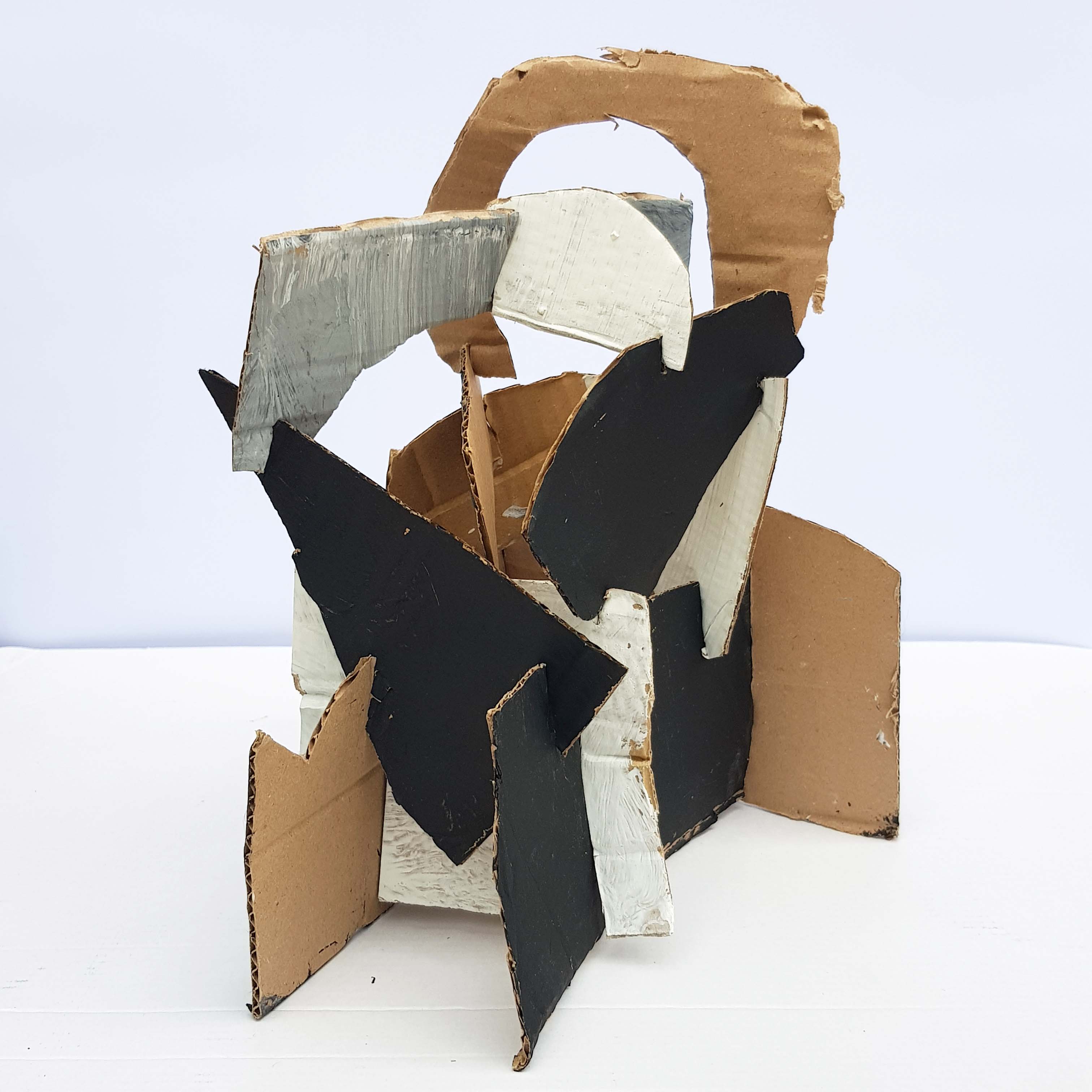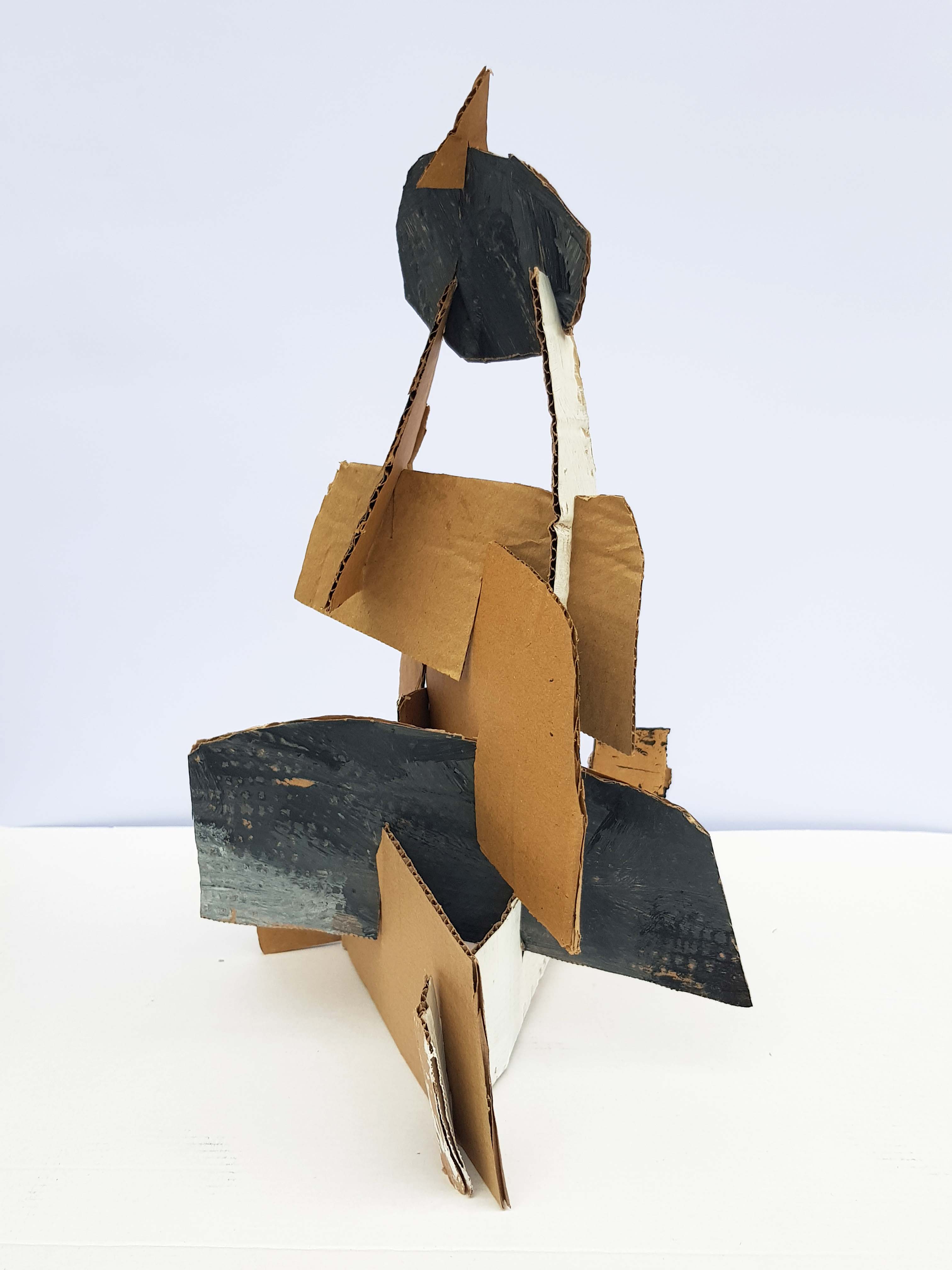 Vous avez besoin du carton et des ciseaux. Si vous souhaitez créer une sculpture colorée, vous aurez également besoin de la peinture (acrylique ou gouache) et des pinceaux.