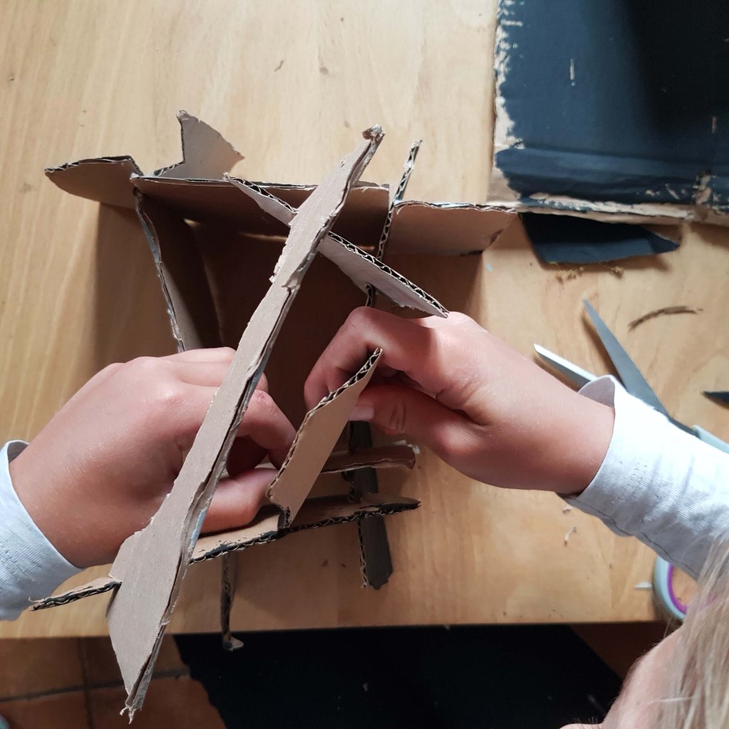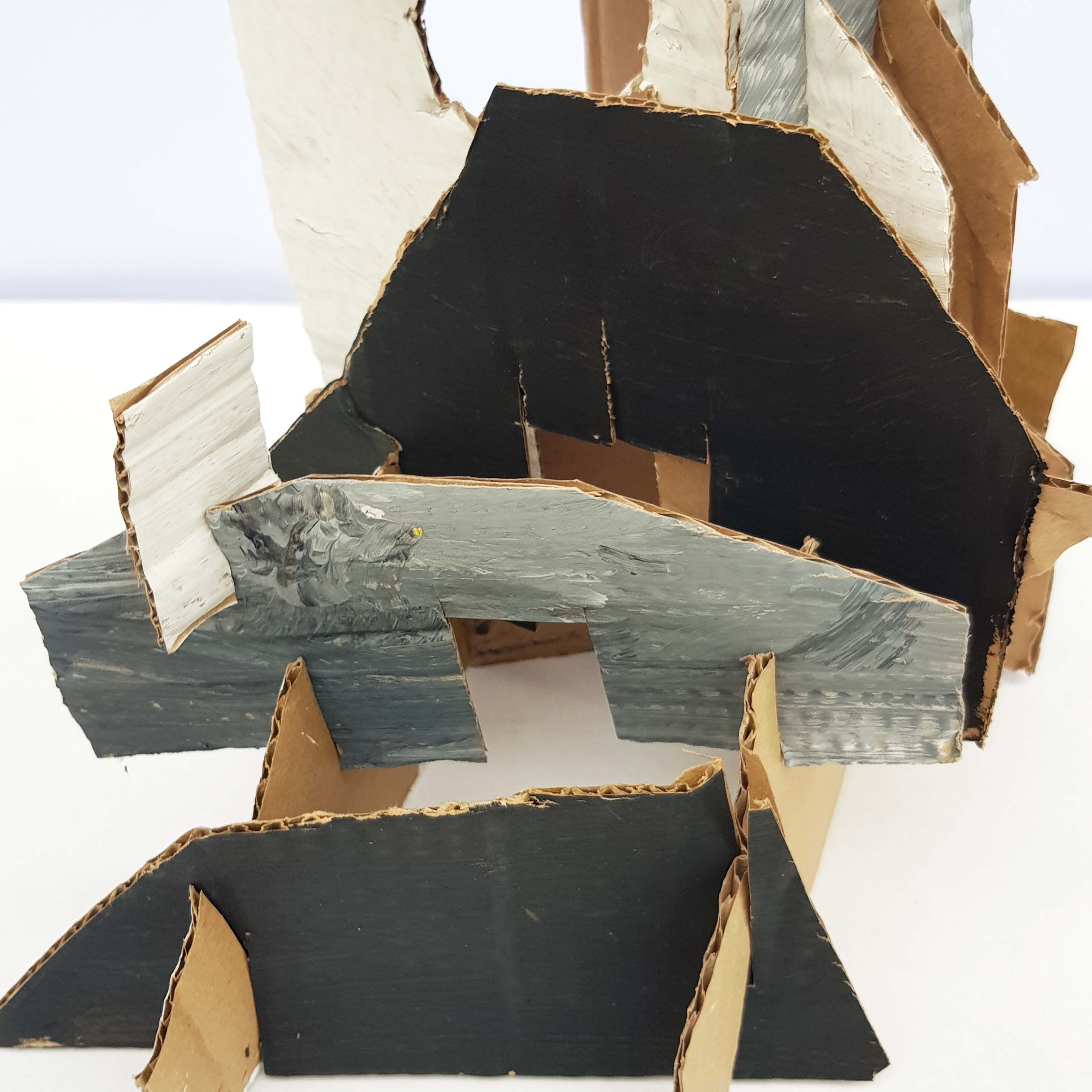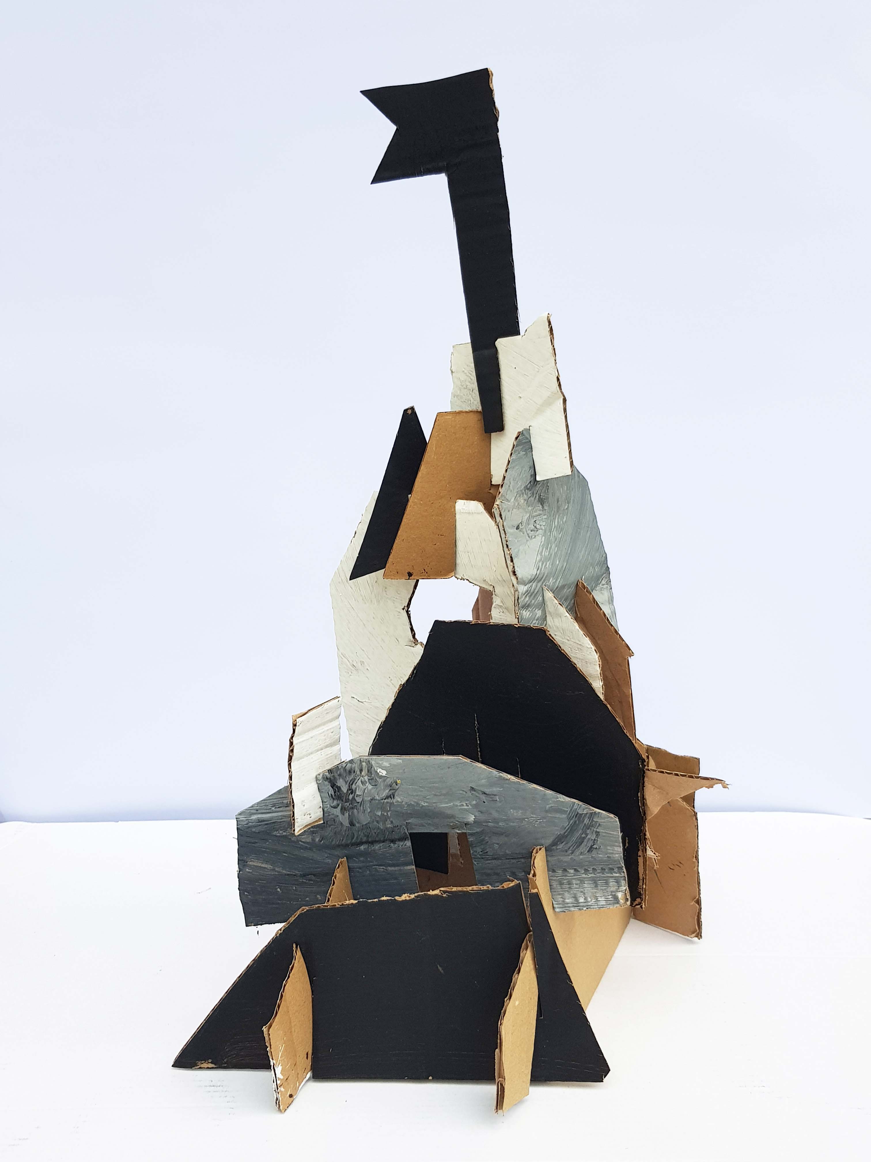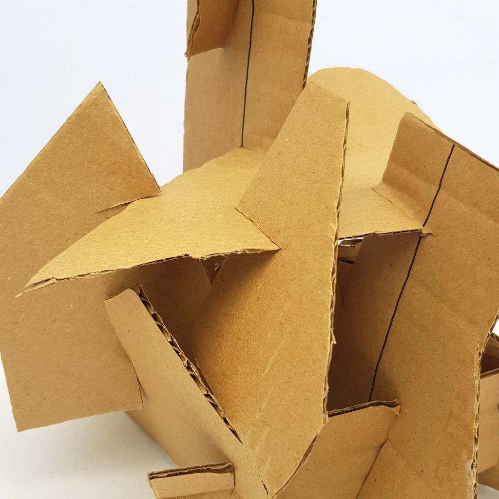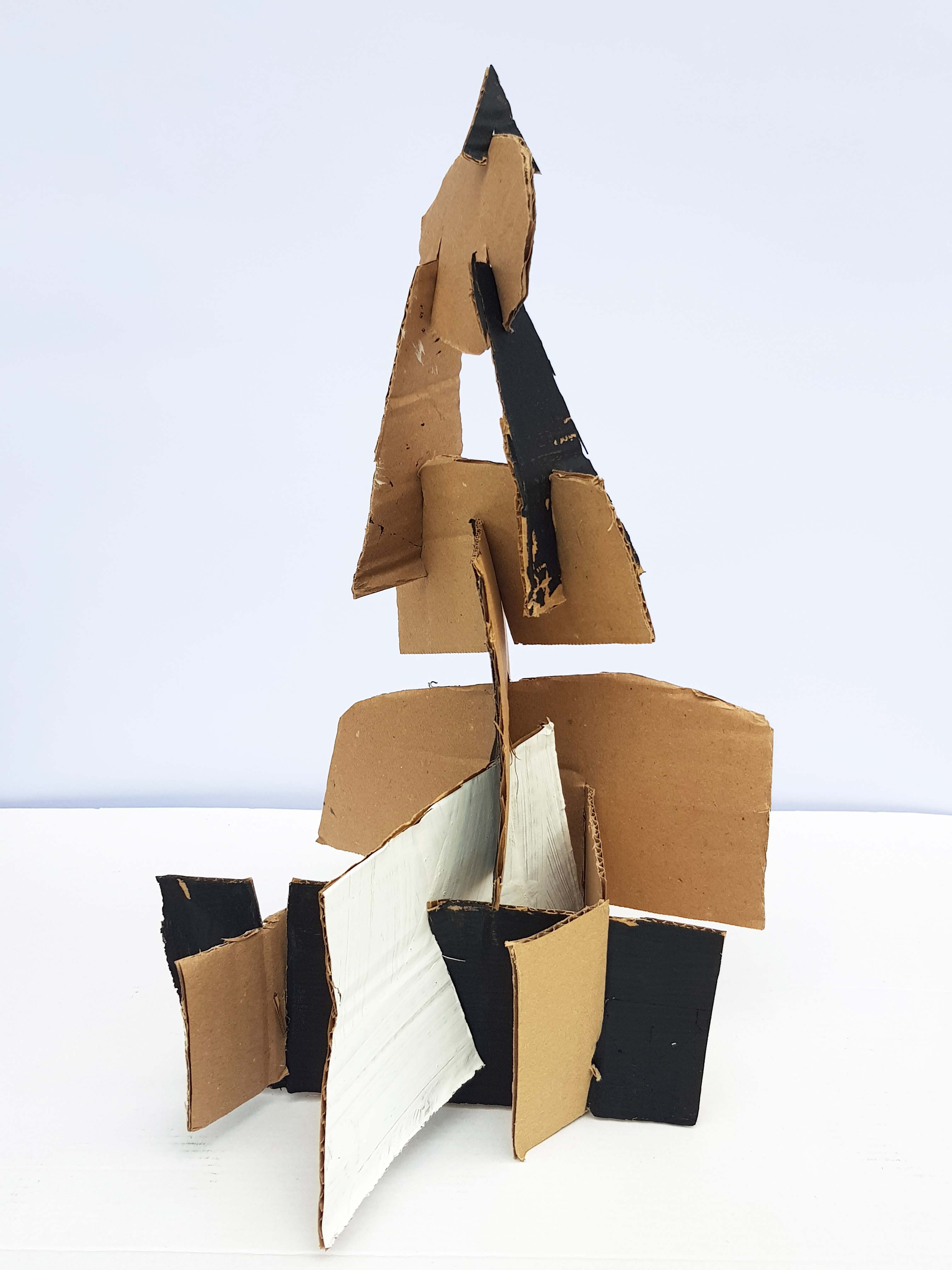 Vous avez besoin du carton et des ciseaux. Si vous souhaitez créer une sculpture colorée, vous aurez également besoin de la peinture (acrylique ou gouache) et des pinceaux.