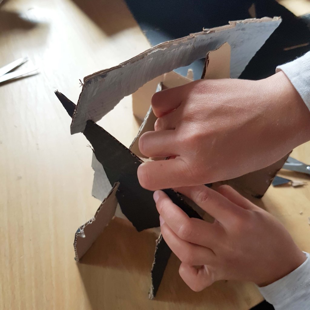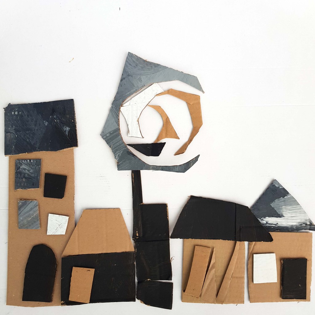 Ensuite transformez votre carton et créez votre propre jeu de composition! N’hésitez pas à découper des formes d’une manière complètement libre – souvent les formes les plus bizarres sont les plus intéressantes pour la création. Laissez votre imagination s’exprimer, créez des visages, villes, jardins, chambres, voitures, animaux, tours, châteaux ou robots.