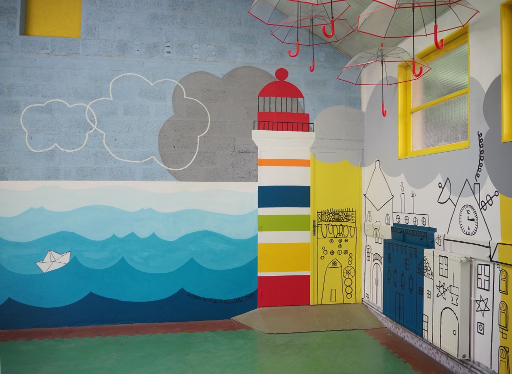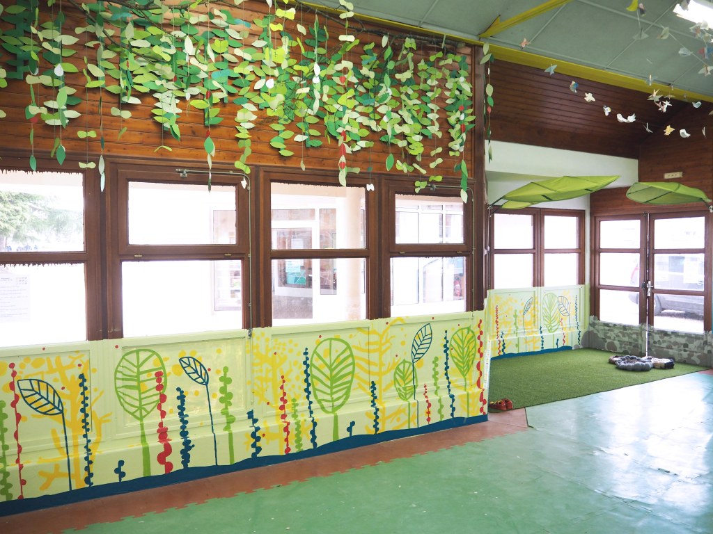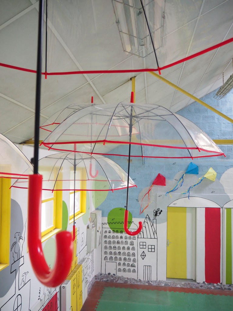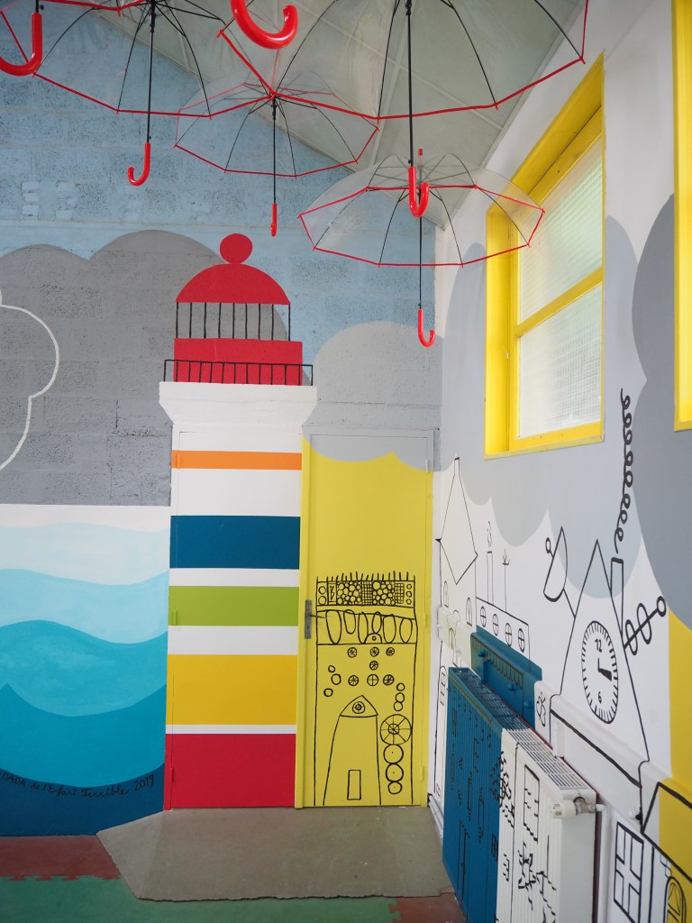 Le thème choisi a été celui de la météo et du climat. Nous avons donc imaginé plusieurs espaces, plusieurs paysages et ambiances qui permettraient aux enfants de se (re)poser et jouer par temps de pluie.