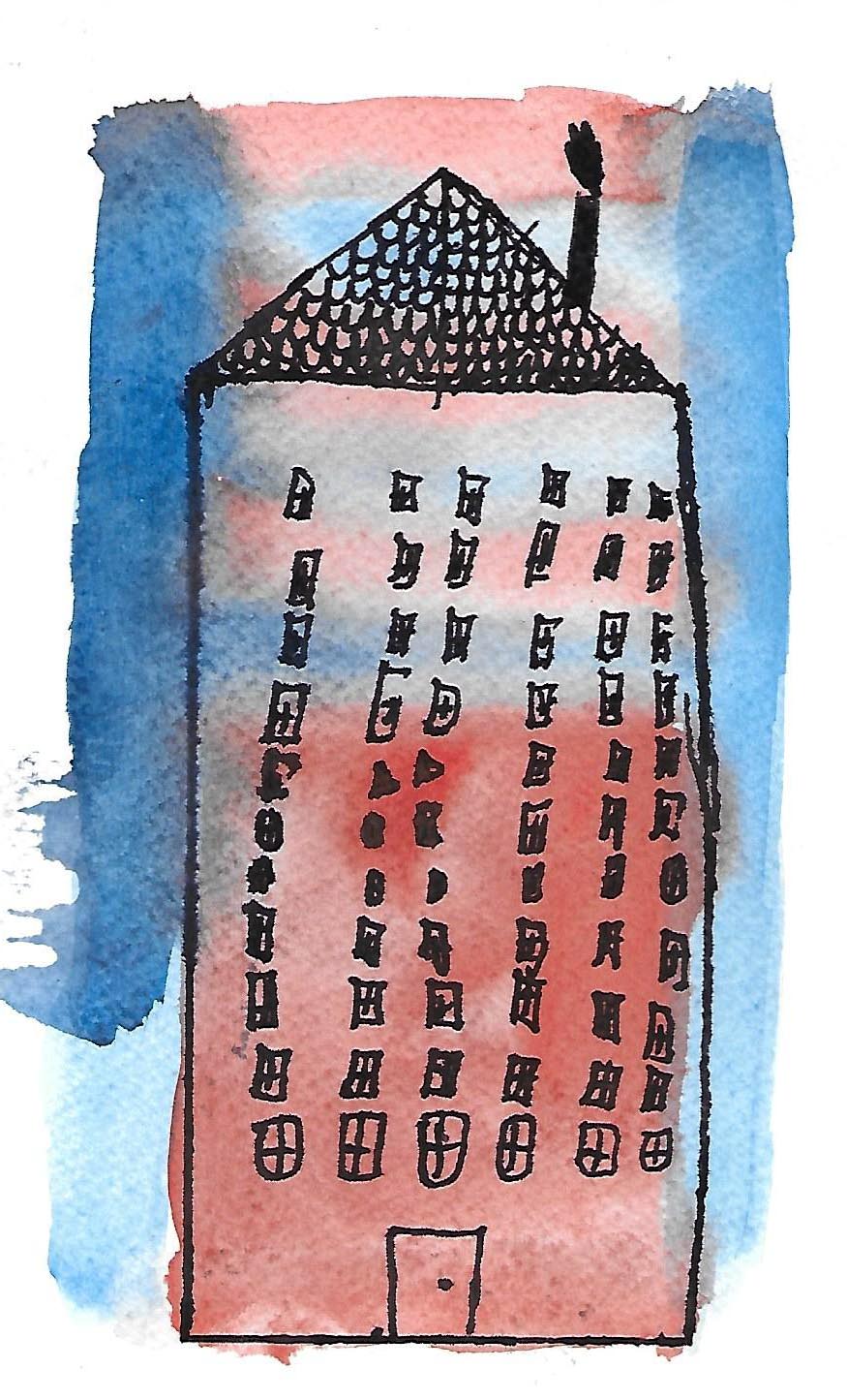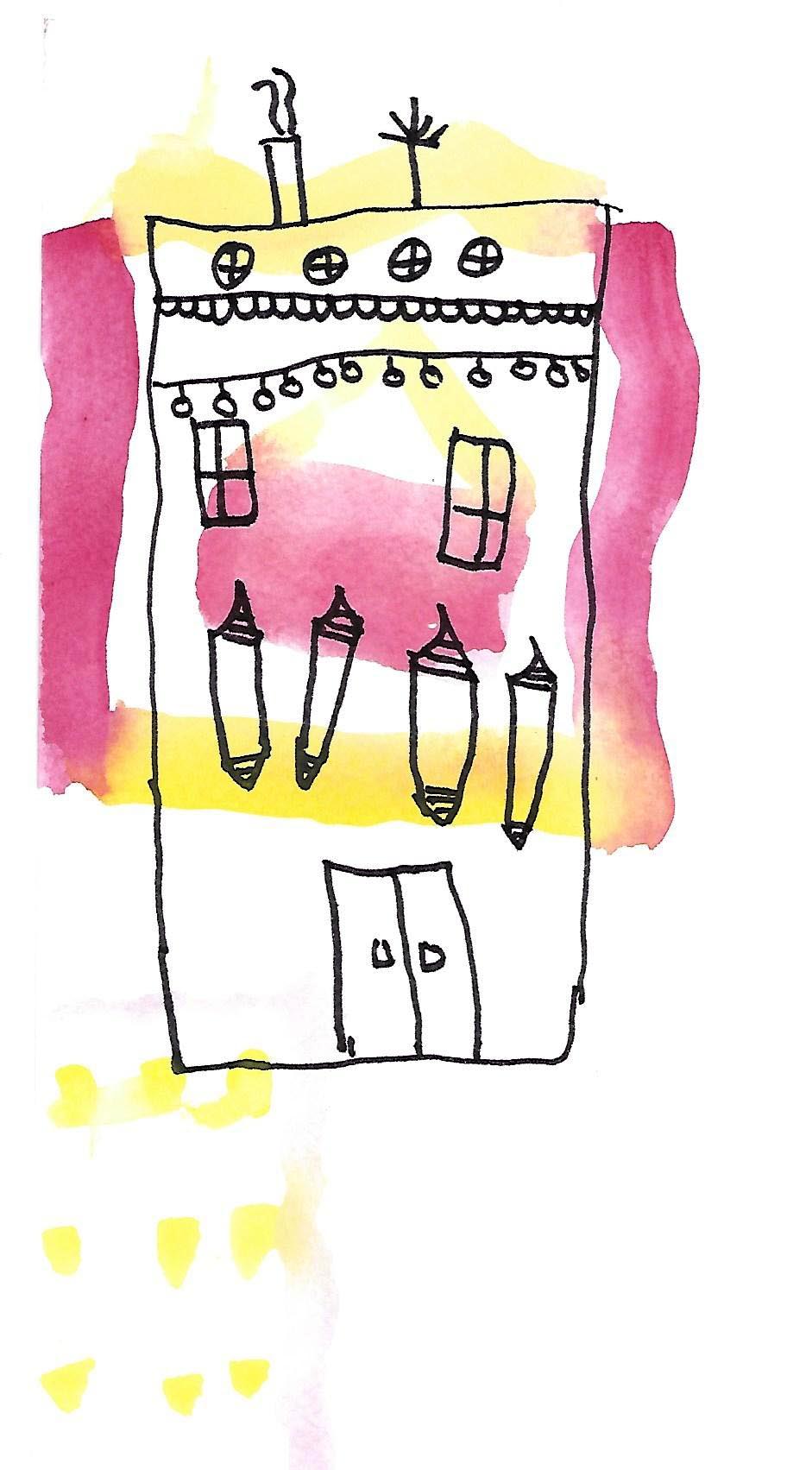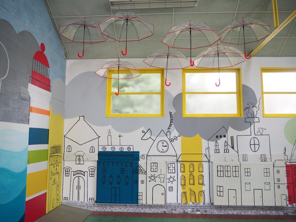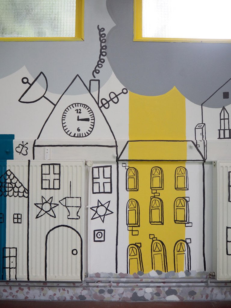 Les maisons imaginées et dessinées par les élèves de CM1 et CM2 ont ensuite été reproduites sur le mur.