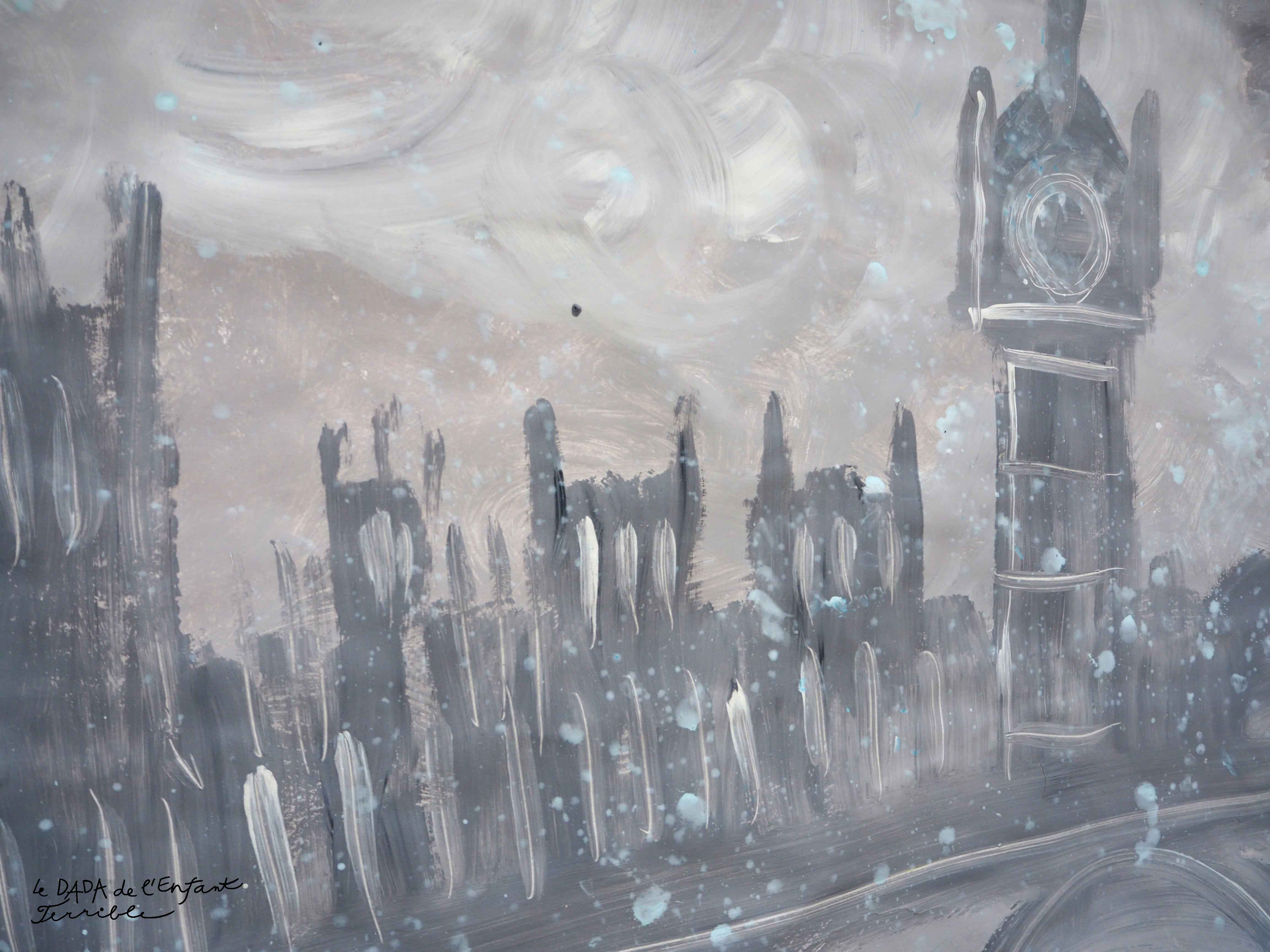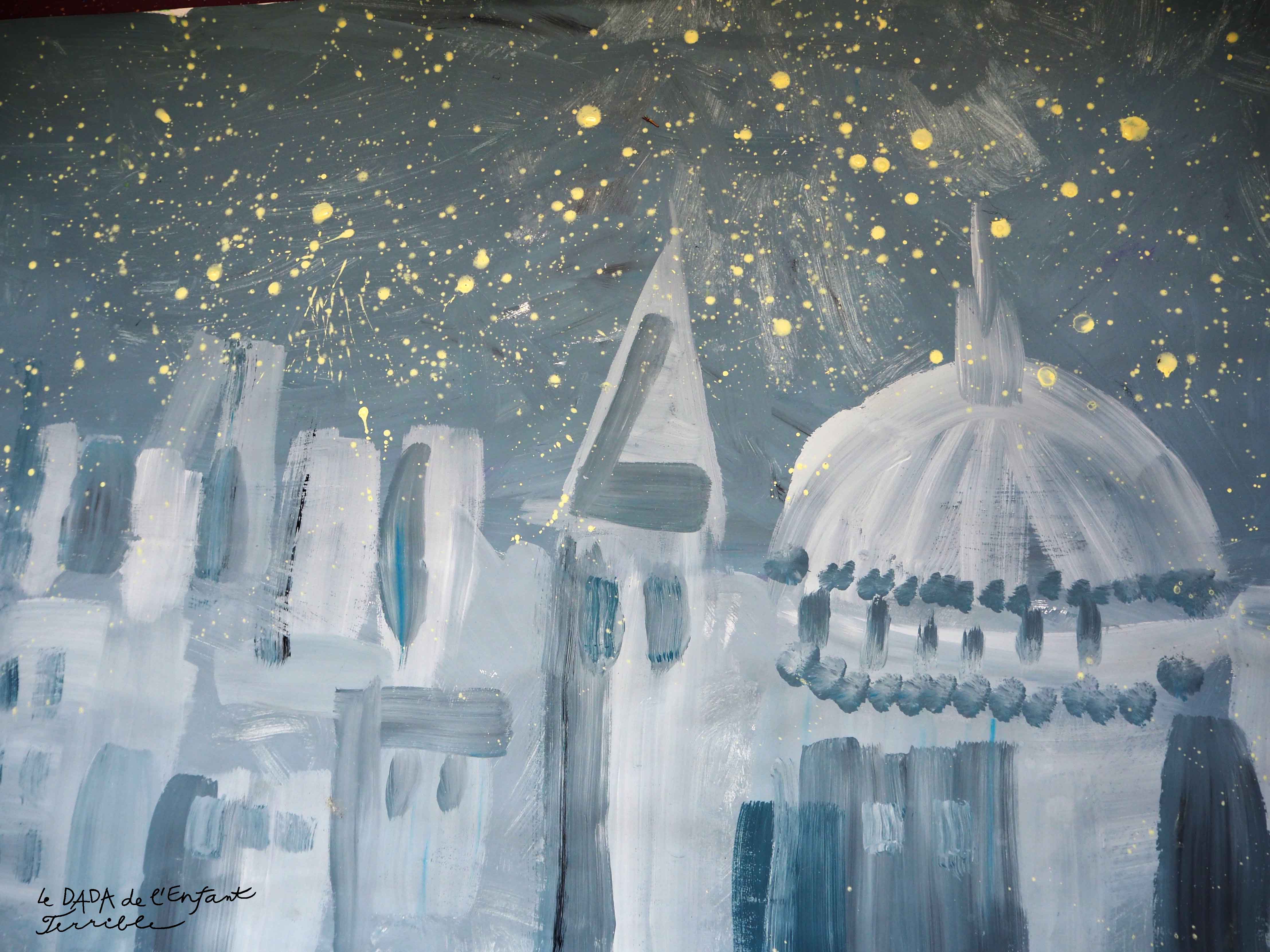 Technique: peinture (gouache) – pinceaux, doigts, peinture projetée